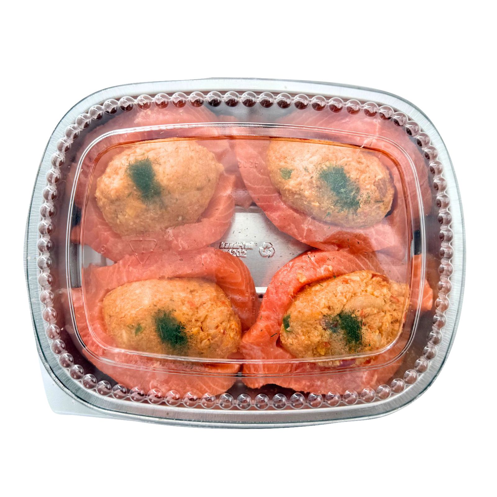 Four stuffed salmon per tray