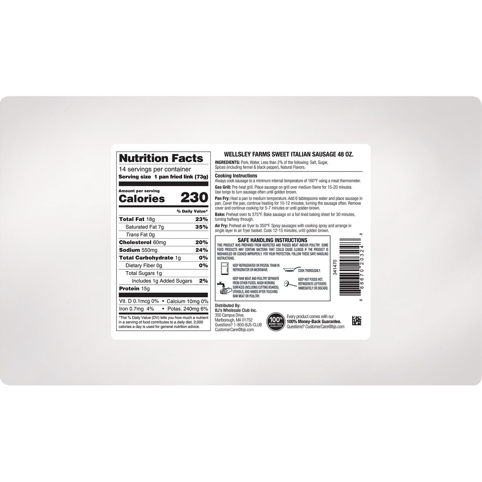 Wellsley Farms Sweet Italian Sausage, 14 Links, 3 lbs.