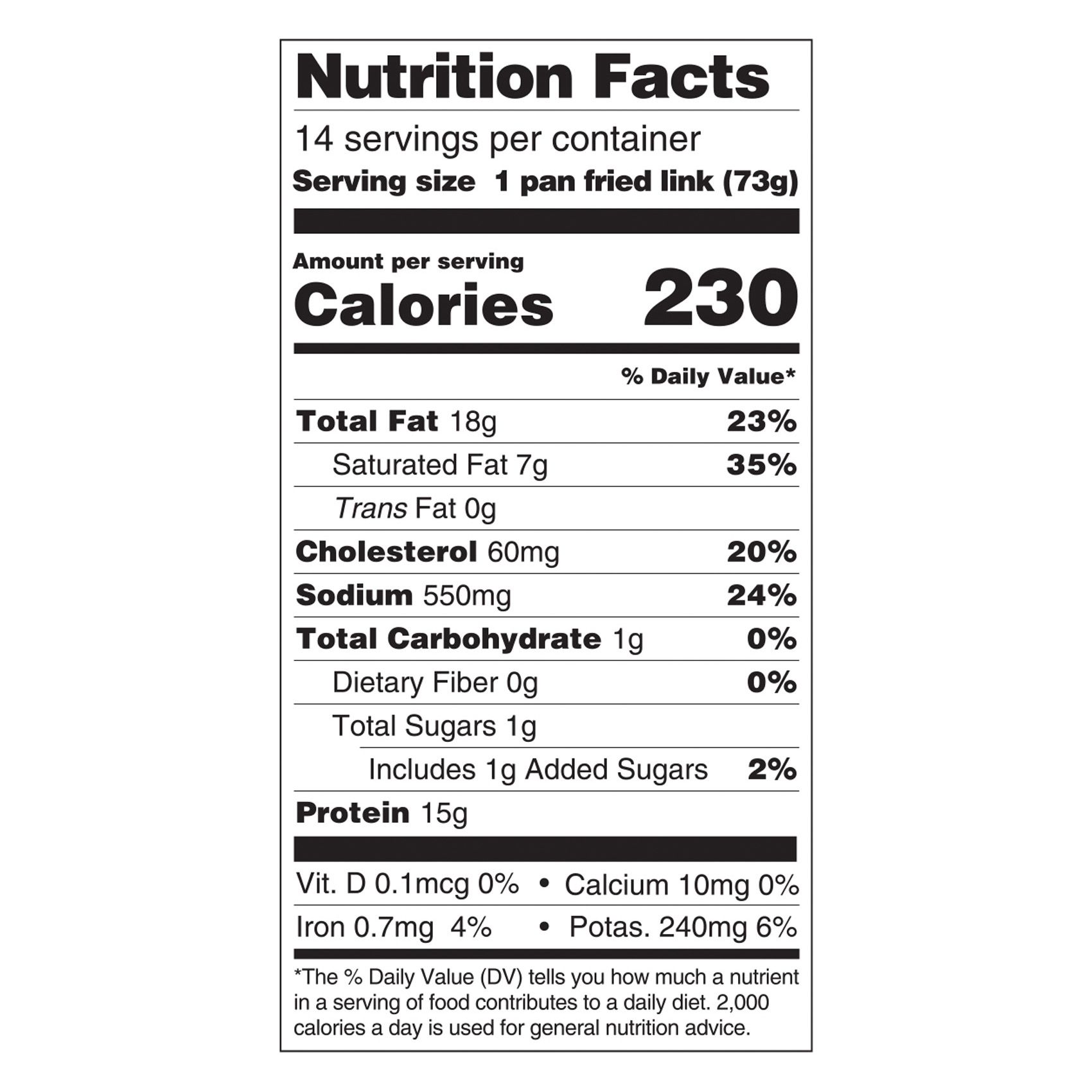 Ingredients: Pork, Water, Less than 2% of the following: Salt, Sugar, Spices (including fennel & black pepper), Natural Flavors.