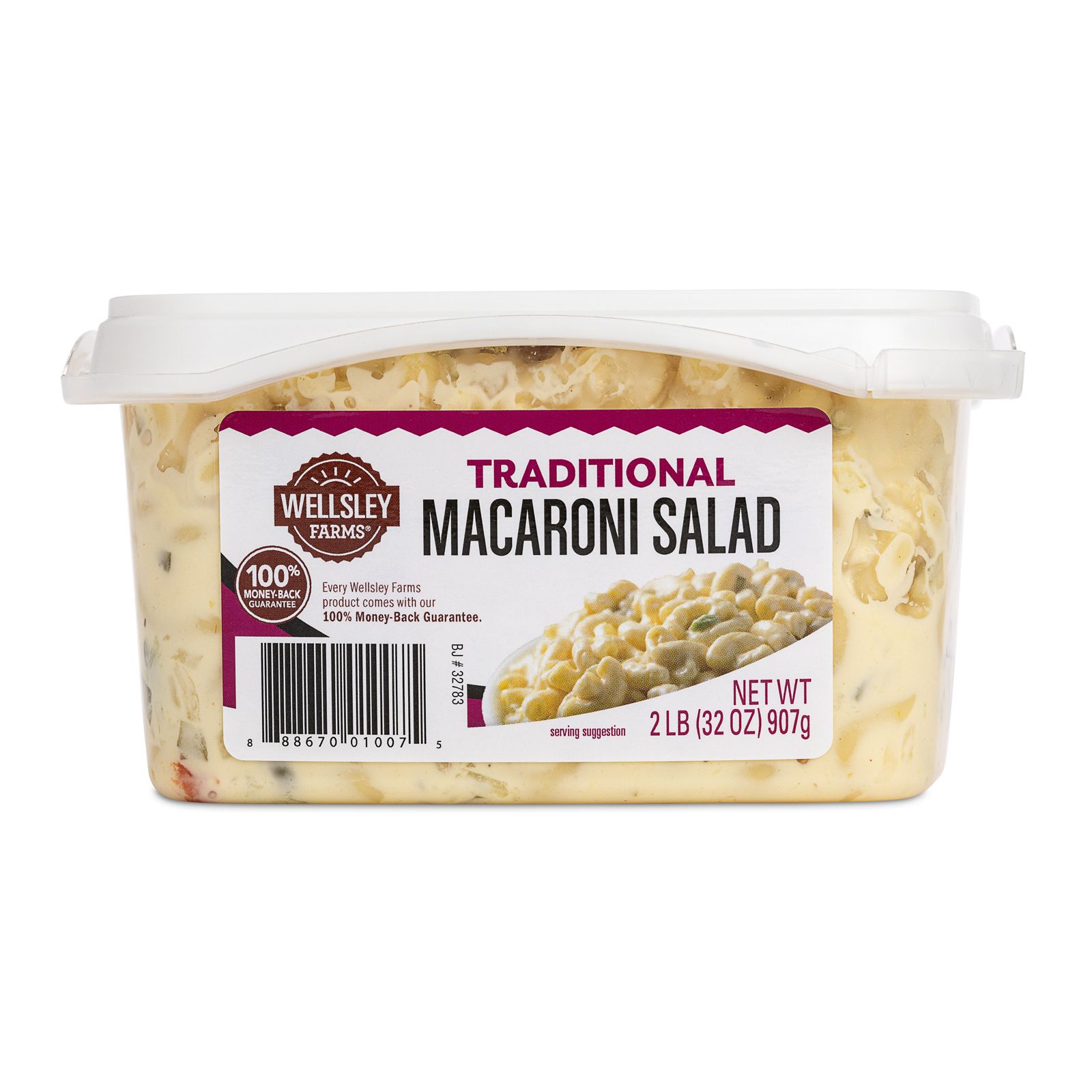Wellsley Farms Traditional Macaroni Salad is an excellent dish to bring to family gatherings, packaged in a large two-pound size container. Share this macaroni salad at cookouts and barbecues, or enjoy at home for anytime. This macaroni salad is ready-to-serve for your convenience.