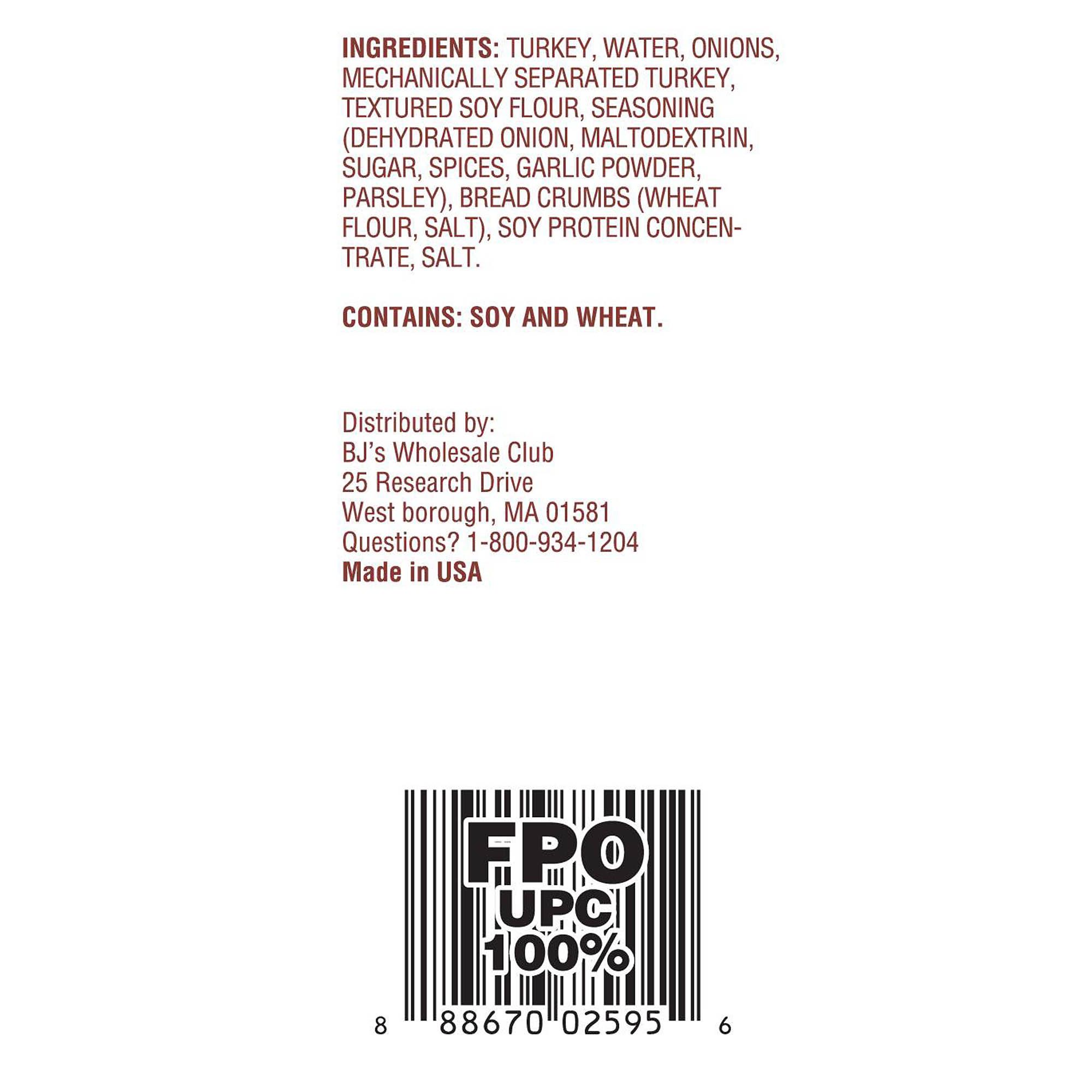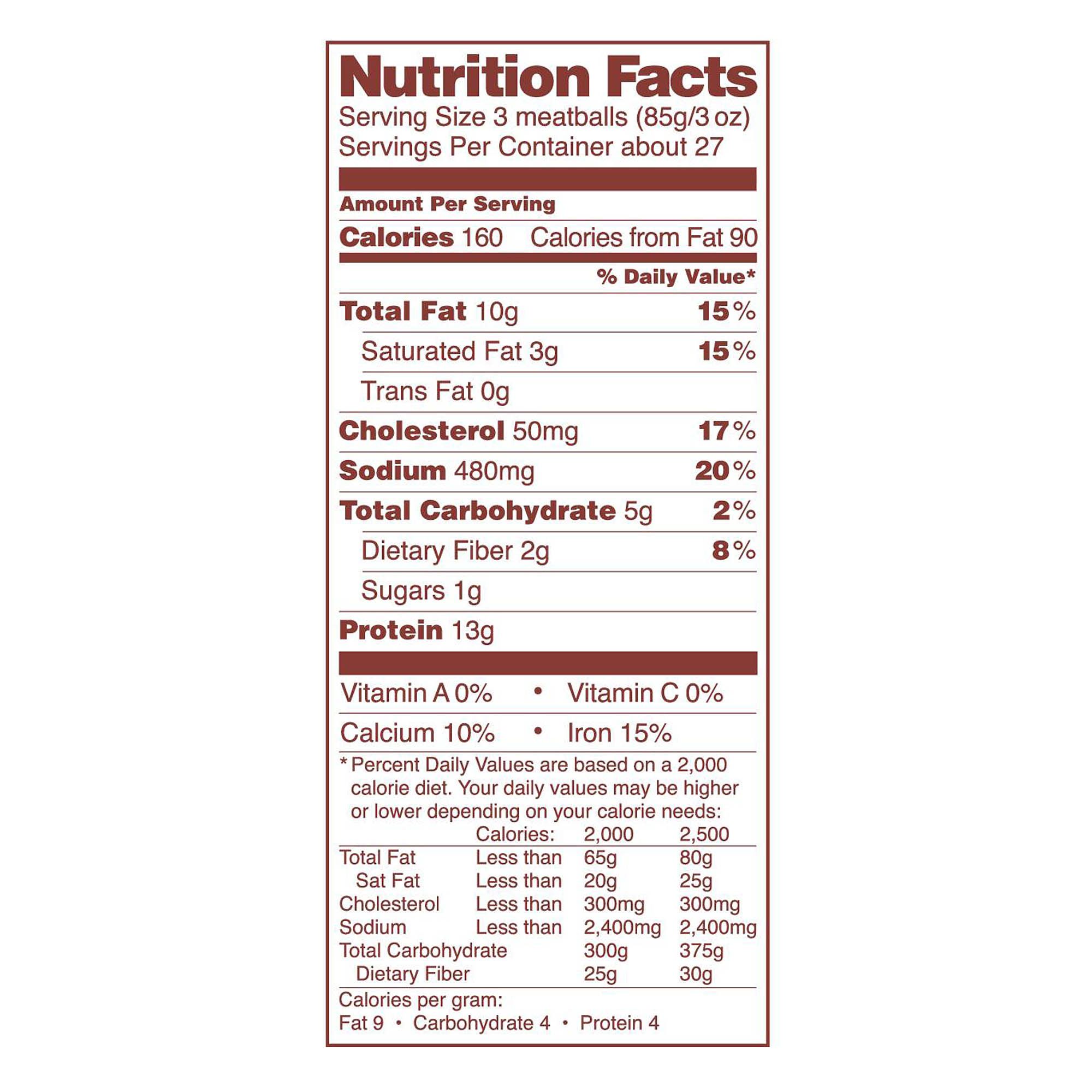 Fully-cooked Approximately 80 meatballs per package Cooks in 15-20 minutes Made in USA Includes 5 lbs. of frozen turkey meatballs
