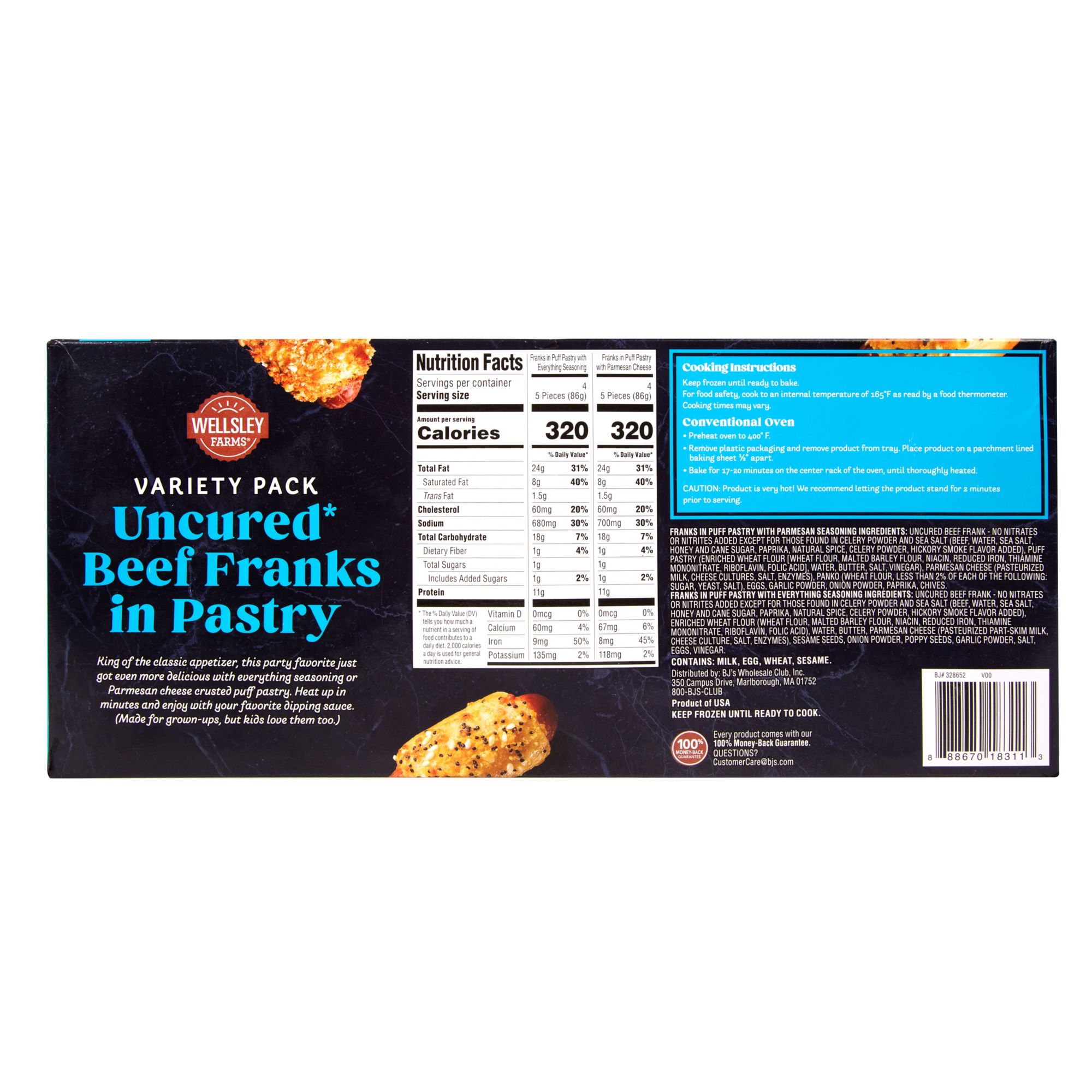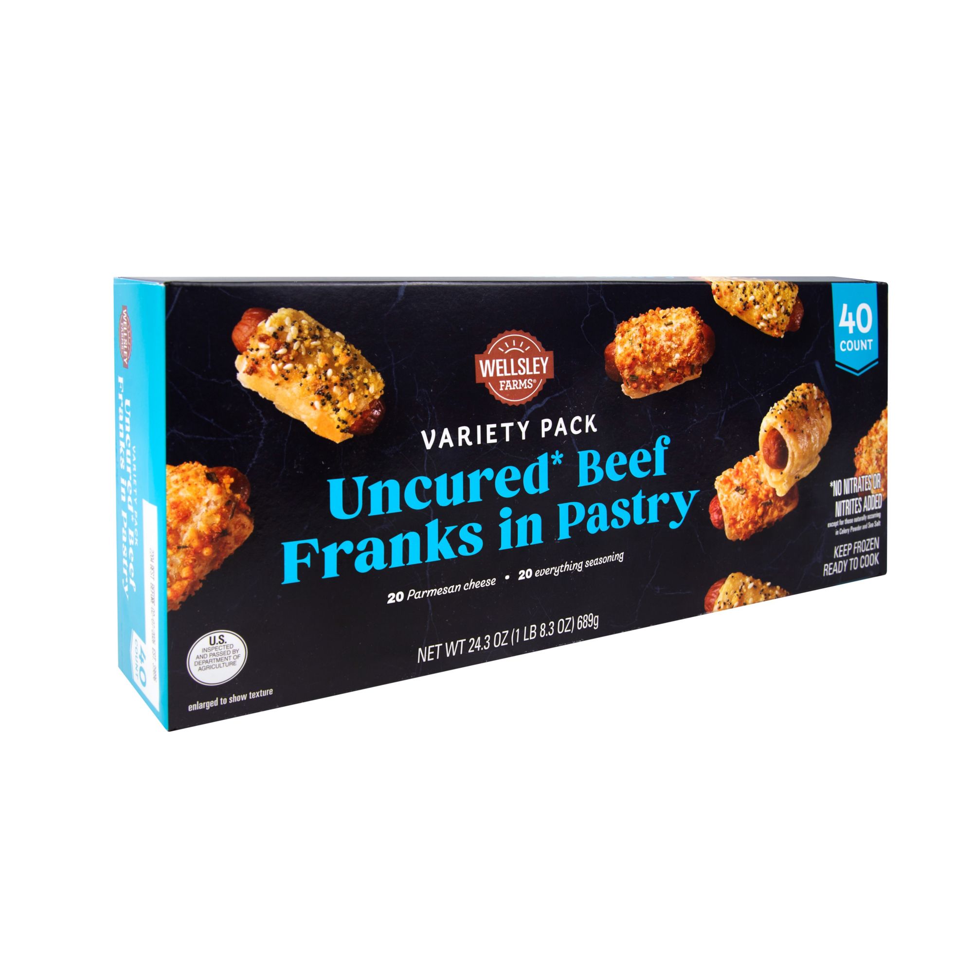 Includes variety pack of cocktail beef franks in puff pastry, 40 ct.