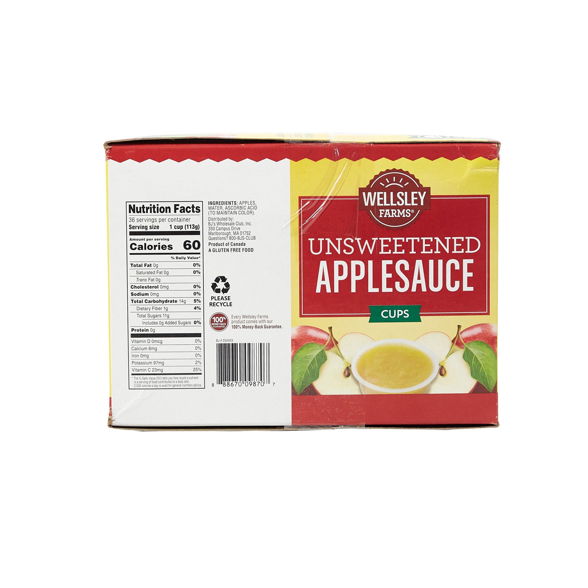 Wellsley Farms Unsweetened Applesauce Cups, 36 ct. is a delicious and healthy snacking option for your busy lifestyle. Made from 100% real fruit, these applesauce cups are perfect for on-the-go and can be enjoyed at home, in your lunchbox, or at work.