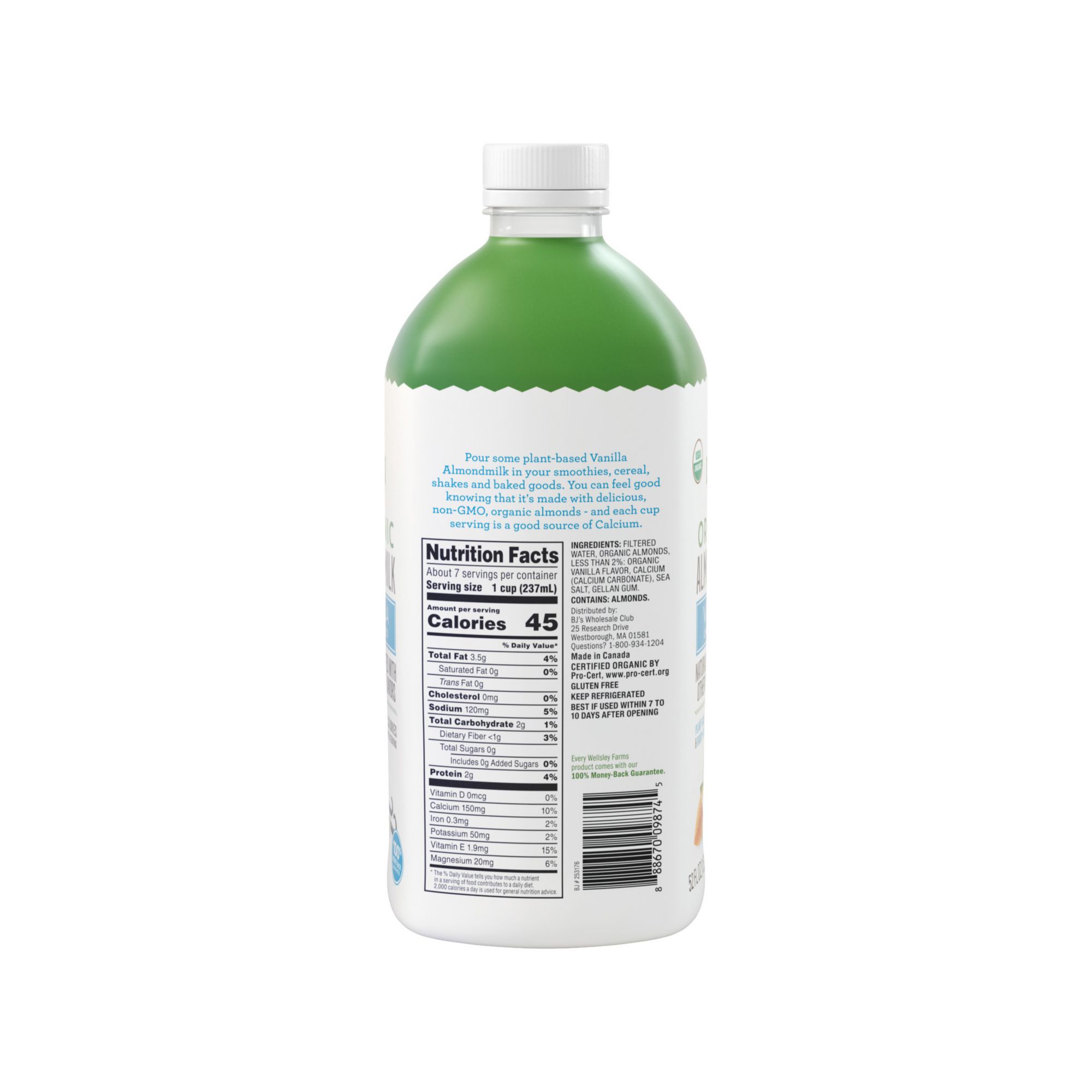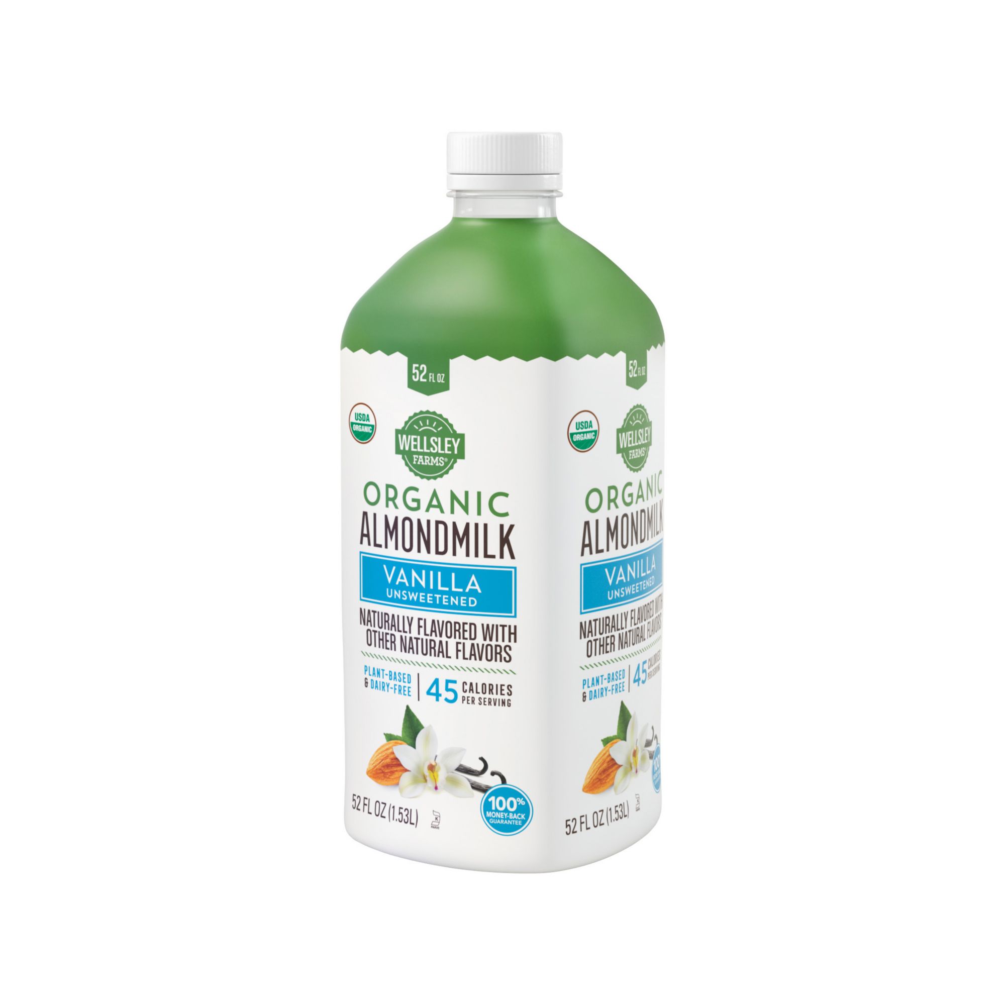 Wellsley Farms USDA Organic Unsweetened Vanilla Almondmilk is organic, kosher and gluten free. It's made from real organic almonds with real vanilla flavor and only 40 calories and 0g of sugars per serving. Pour almond milk over your favorite bowl of cereal, add it for your morning smoothie or protein shake, grab a glass to enjoy with your favorite nut butter and jam sandwich, and you can even use almond milk as creamer for your coffee. Wellsley Farms USDA Organic Unsweetened Vanilla Almond Milk will soon become a staple in your household.