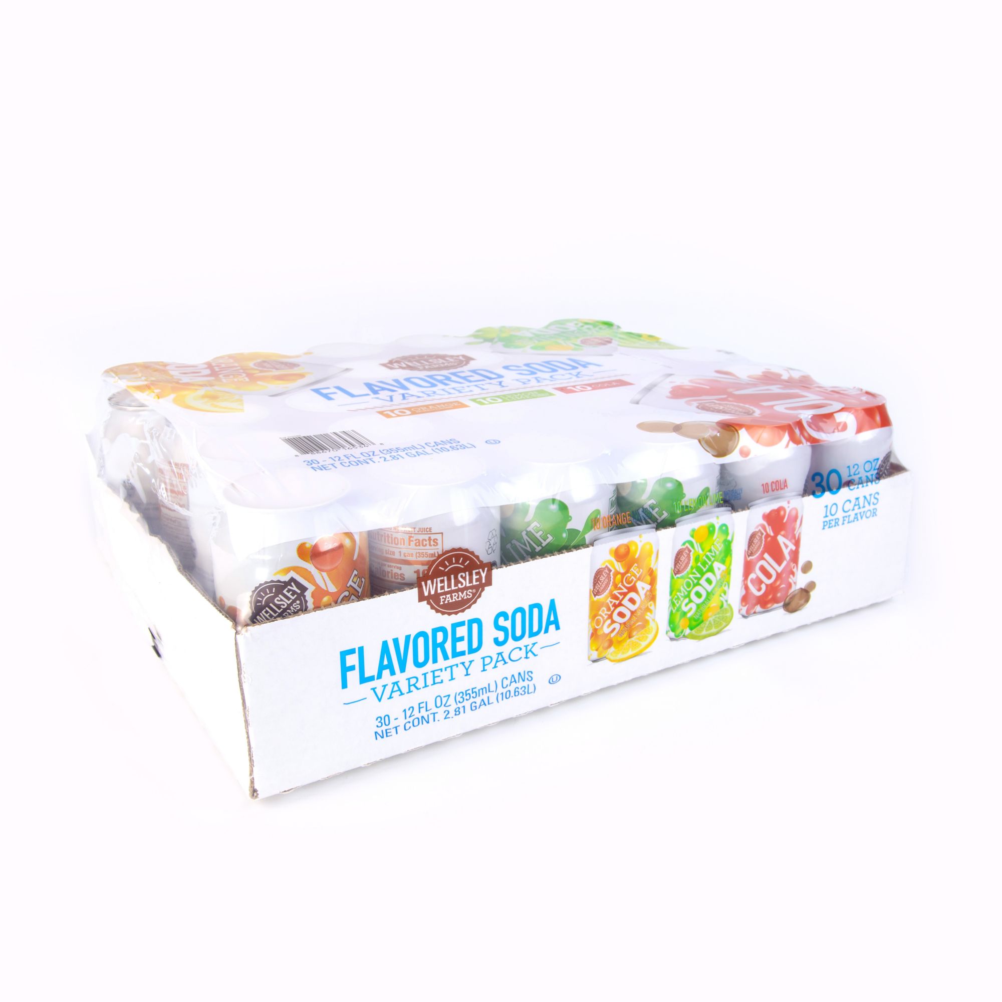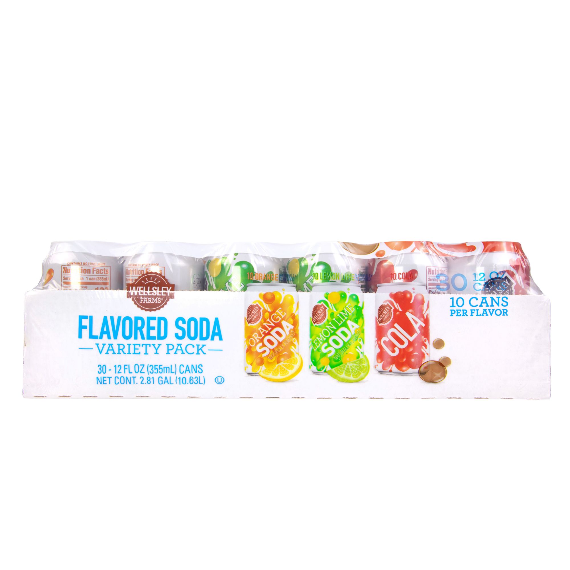 Quench your thirst with a trio of classic favorites in one convenient pack. This Wellsley Farms 12-oz. Soda Variety Pack features 30 cans in total—10 each of Cola, Lemon-Lime, and Orange. Whether you're stocking up for a party, family gathering, or just everyday refreshment, this assortment delivers crowd-pleasing flavor for every taste. Enjoy the fizz, share the fun, and keep your fridge ready for any occasion.
