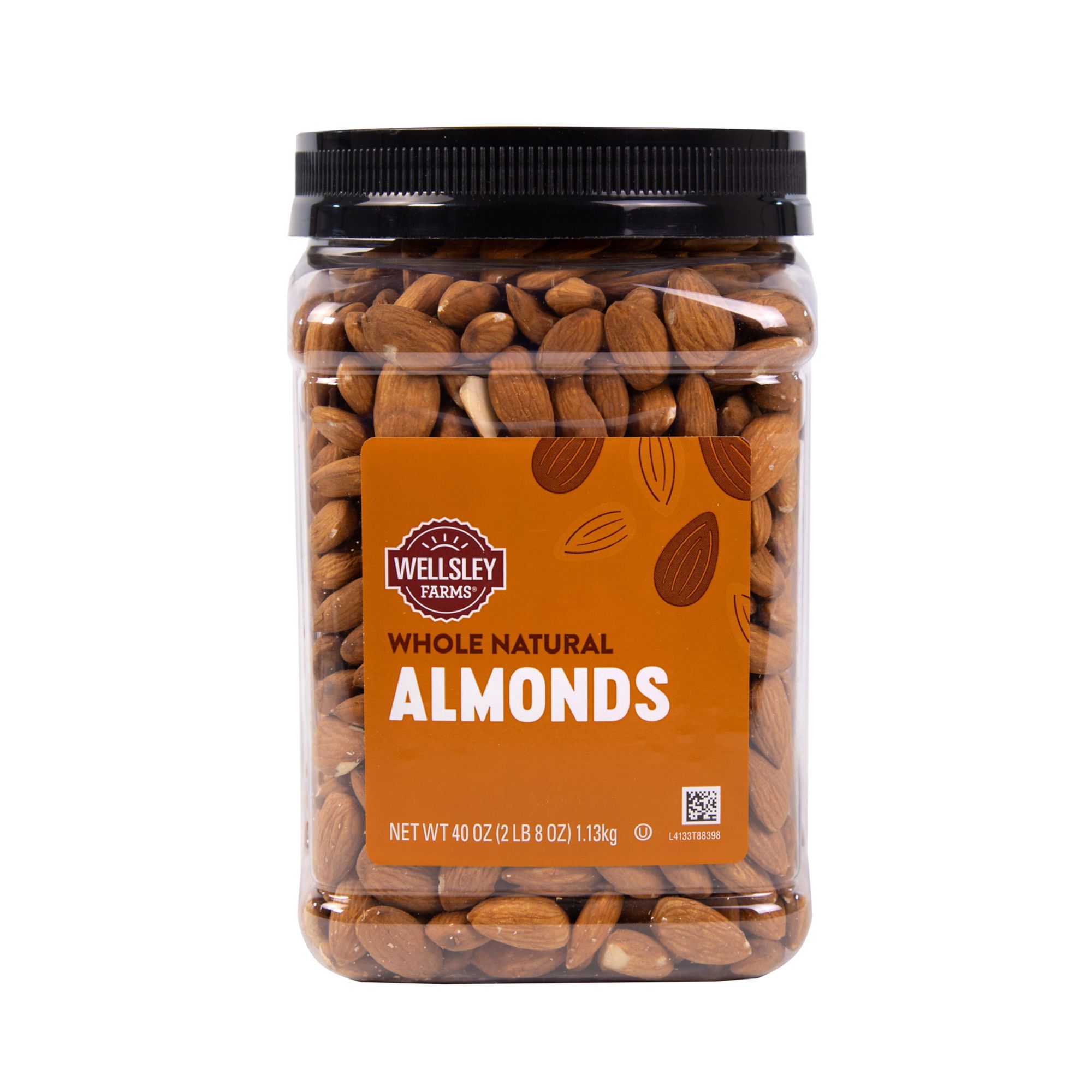 As tasty as they are versatile, these Wellsley Farms Raw Whole Almonds have that just-right crunch which makes them perfect for a mindful snack or for adding to delicious baked goods. These almonds are not roasted or salted which allows their natural flavor to shine through. The resealable container helps keep the freshness in for the perfect almond crunch with every bite whether you’re portioning out for an on-the-go snack, lunch or having them on standby for your favorite baking recipes.