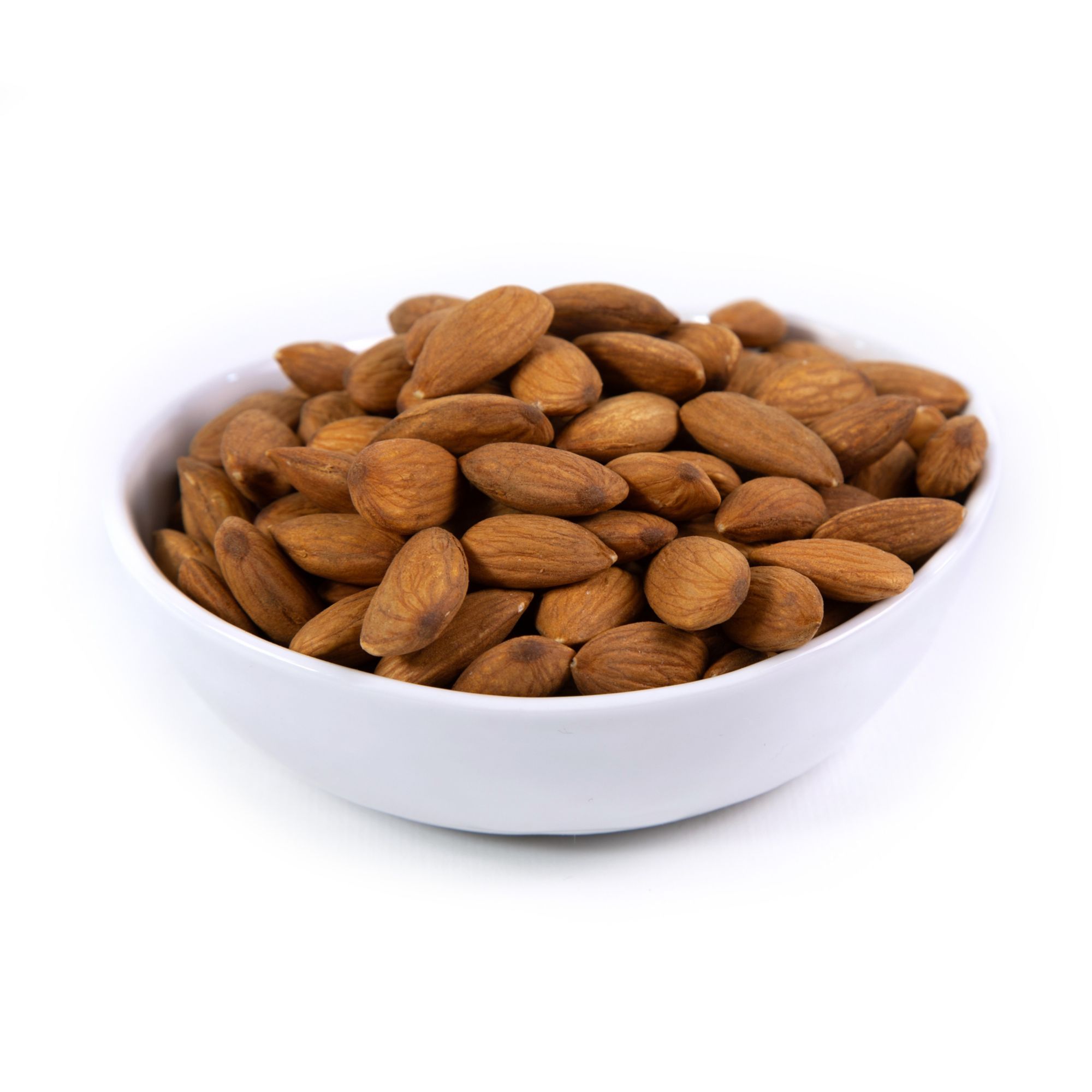 Unroasted and unsalted raw almonds, allowing their natural flavor to shine through