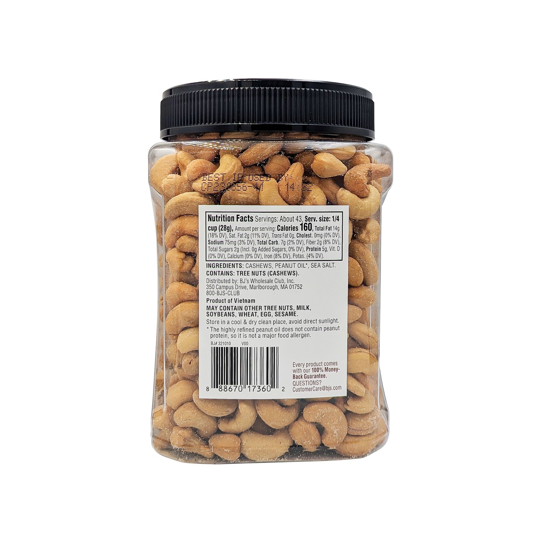 Includes whole roasted salted cashews, 42 oz.