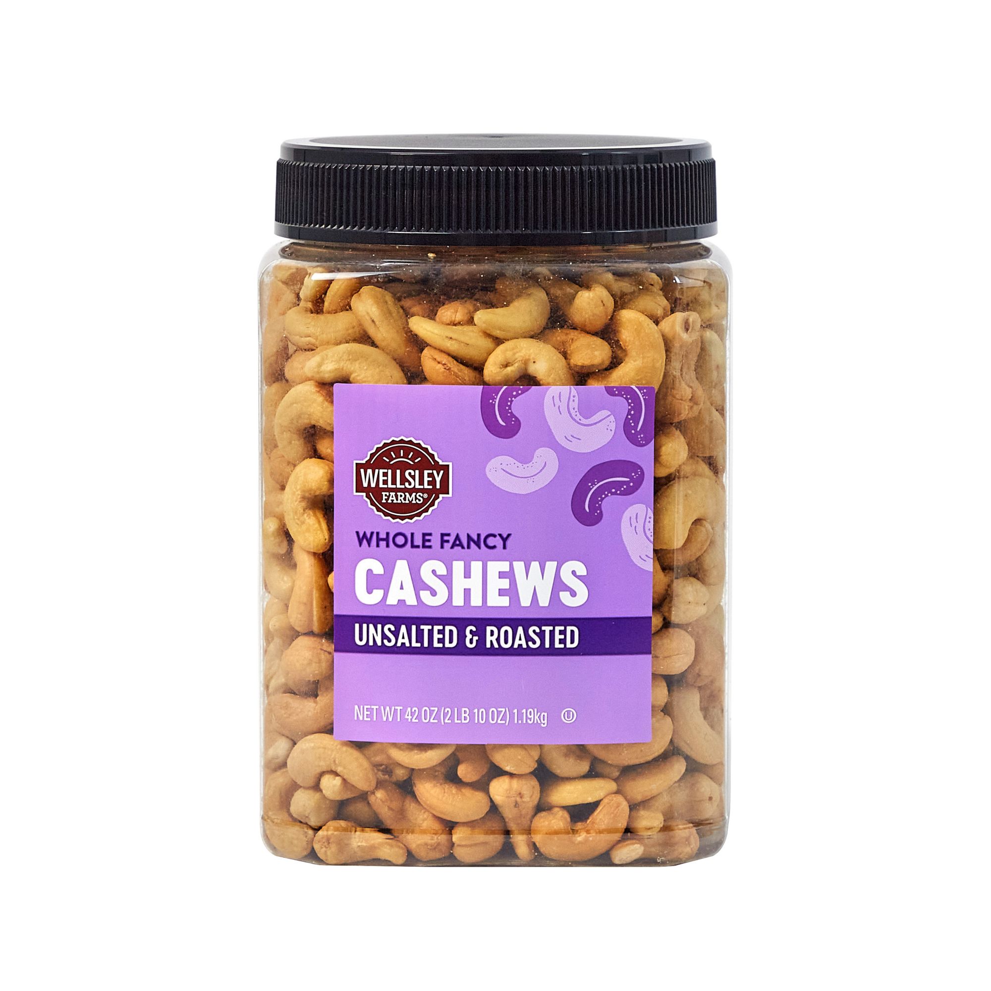 Wellsley Farms Whole Fancy Roasted Unsalted Cashews, 42 oz.