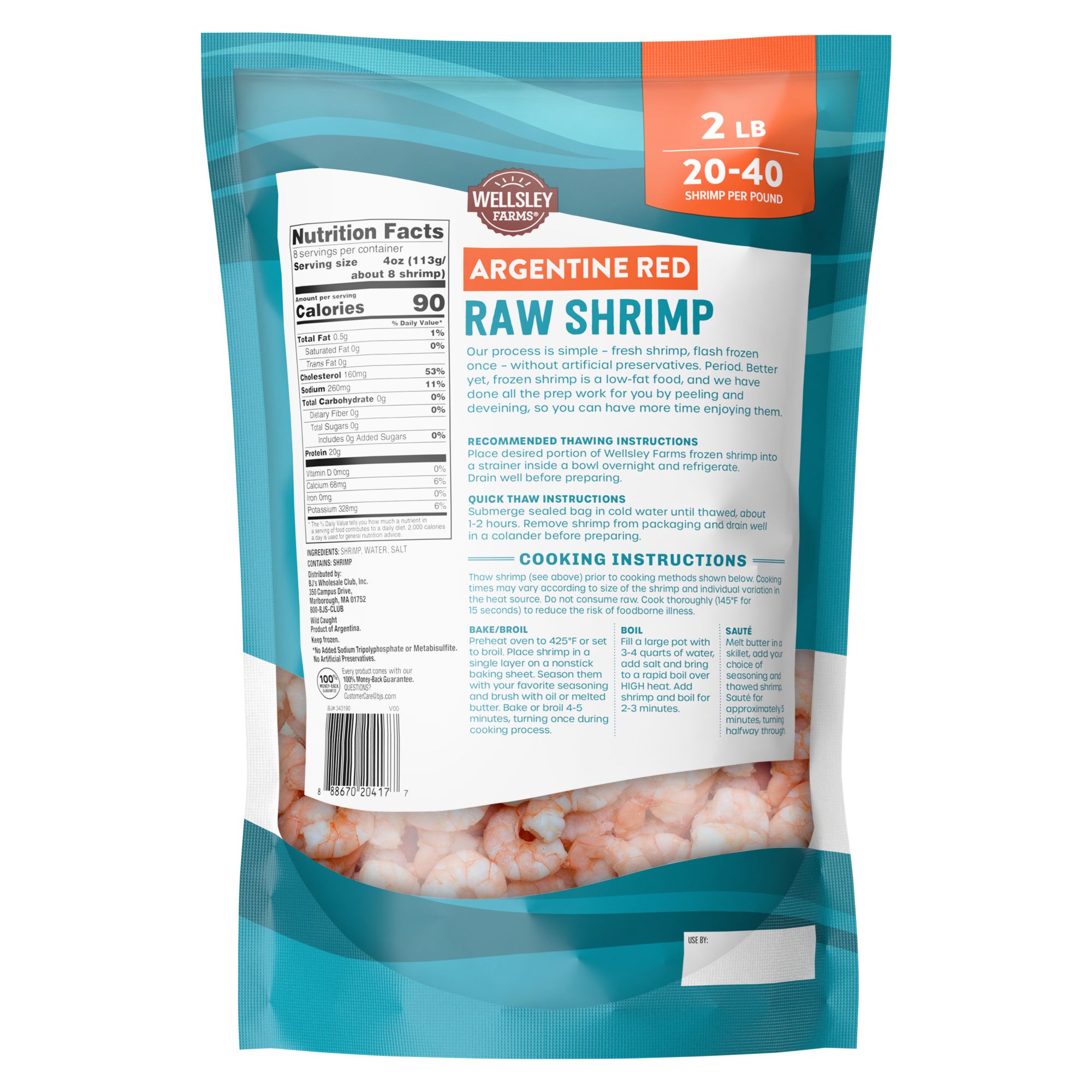 Wellsley Farms Wild Argentine Red Shrimp 20/40, Frozen, 2 lbs.