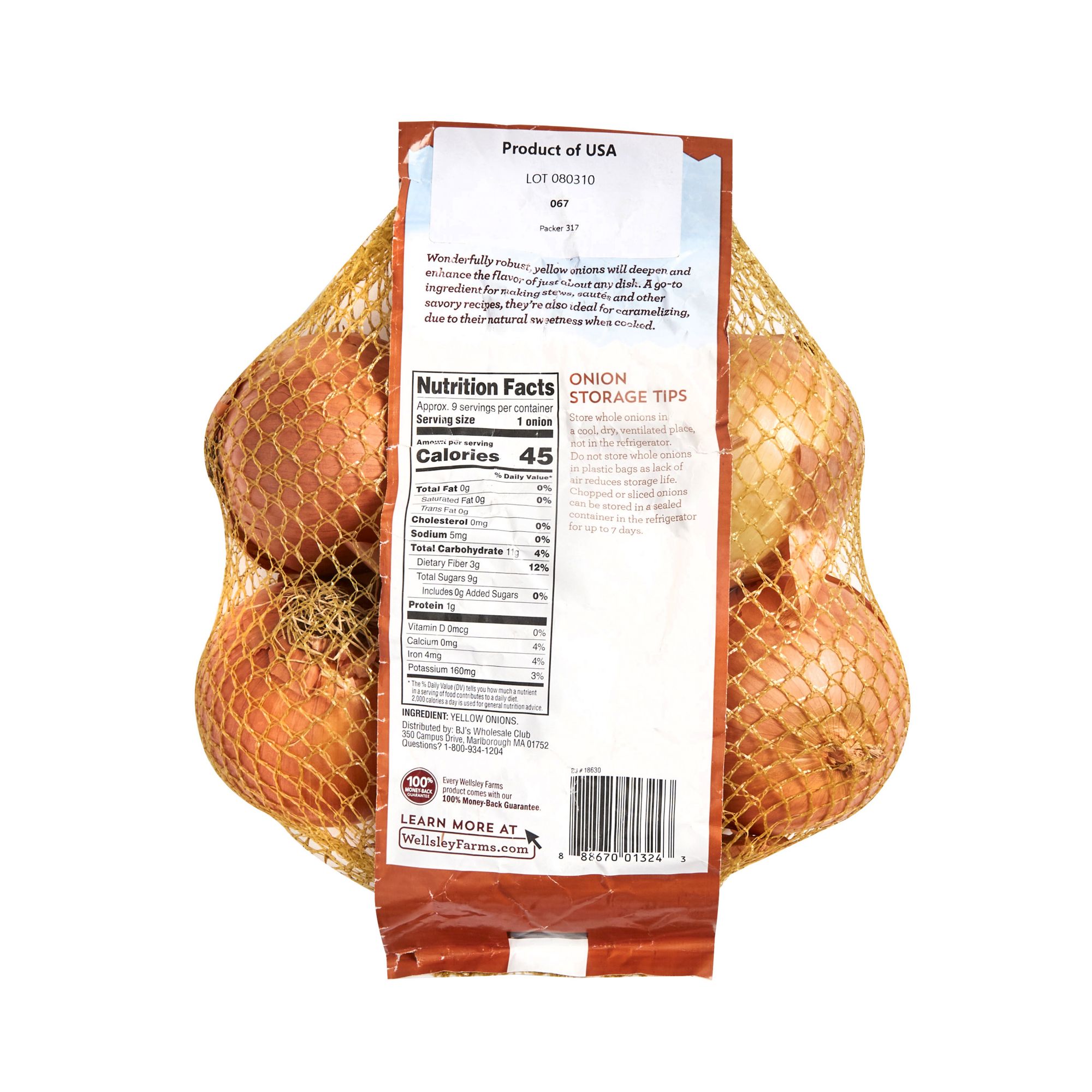 The mild taste of these Wellsley Farms Yellow Onions makes them the perfect ingredient for your refreshing salad or as a key ingredient in your favorite family recipe. They're also known to be packed with antioxidants and high in vitamin C, B6, and iron. Includes 3 lbs. of Wellsley Farms fresh yellow onions.