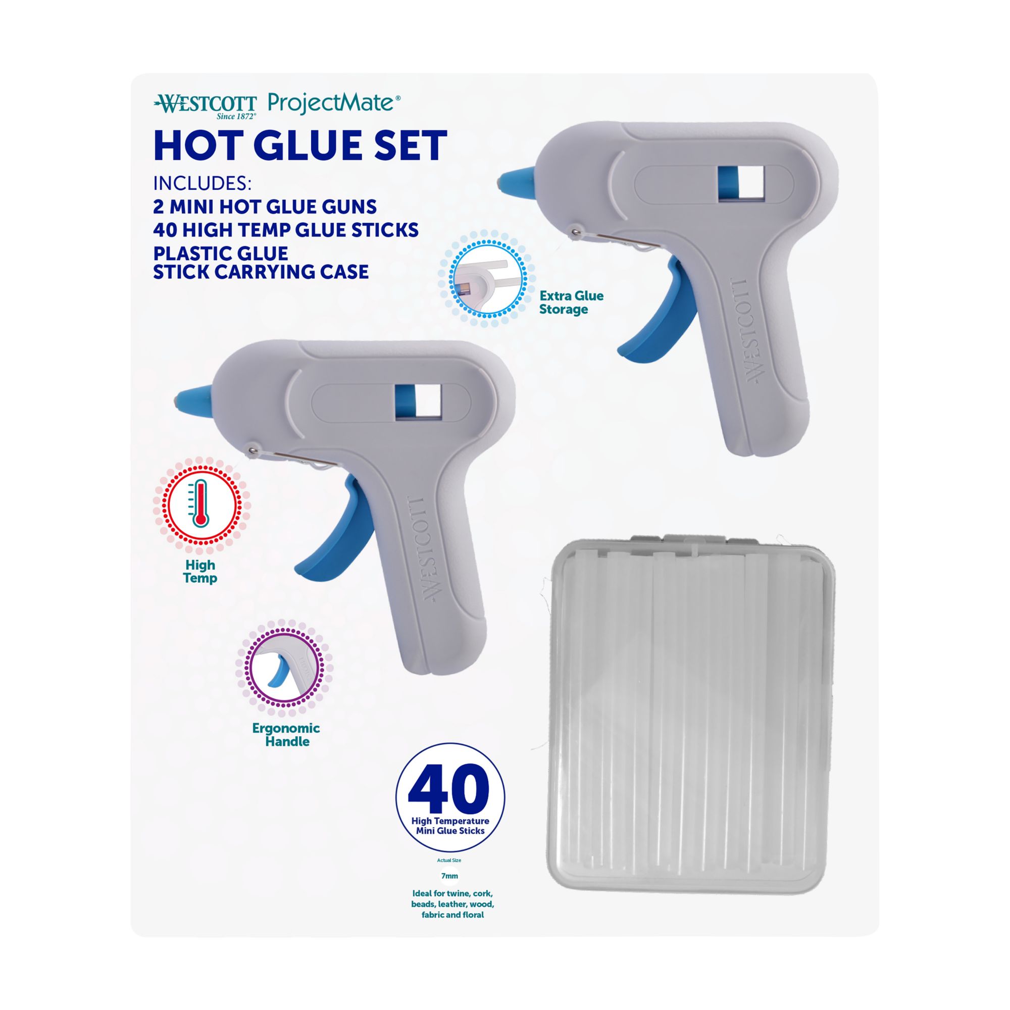 Westcott Premium Safety Mini Hot Glue Gun Set with 40 Glue Sticks and a Carry Case