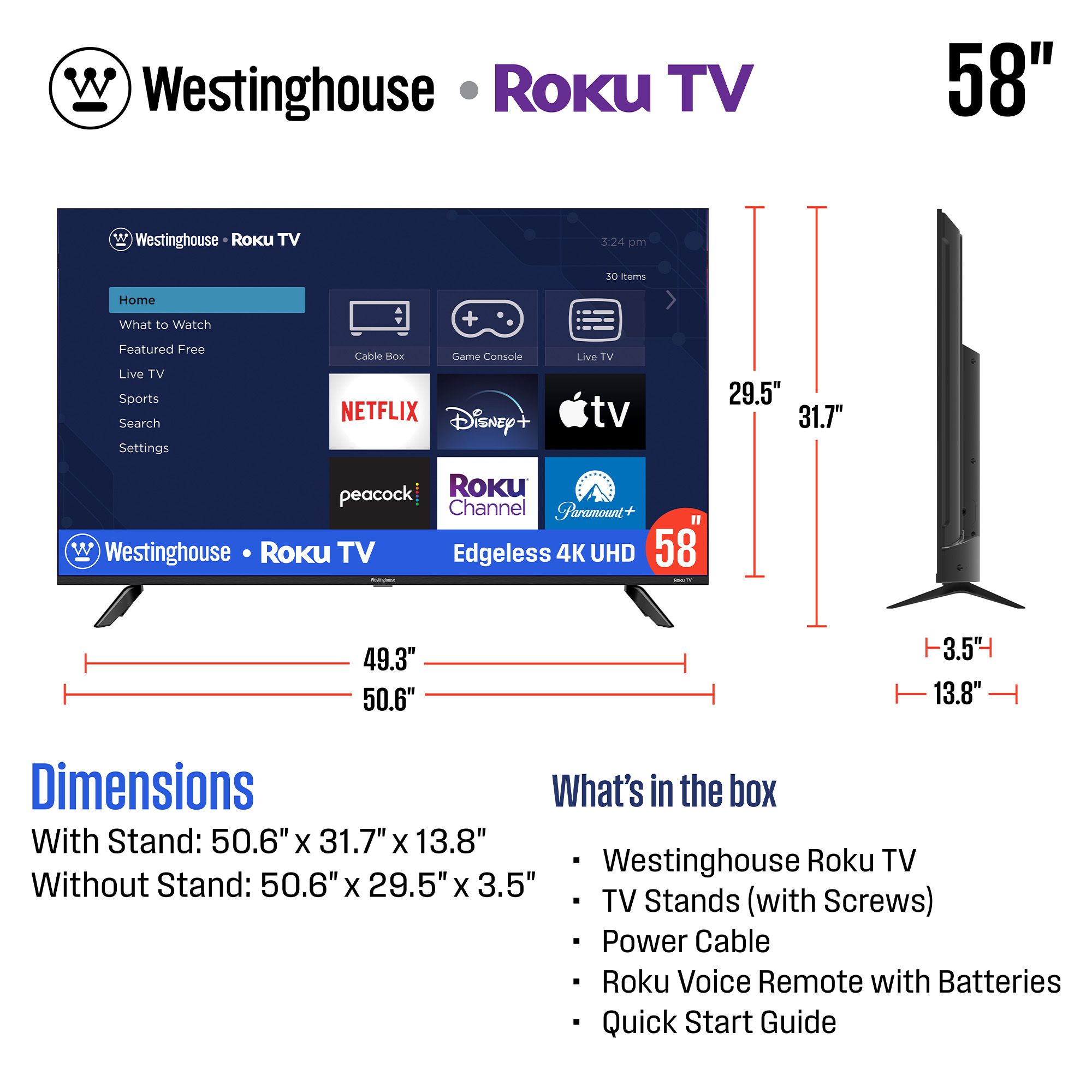 Westinghouse 58" 4K UHD Roku TV with 3-Year Coverage
