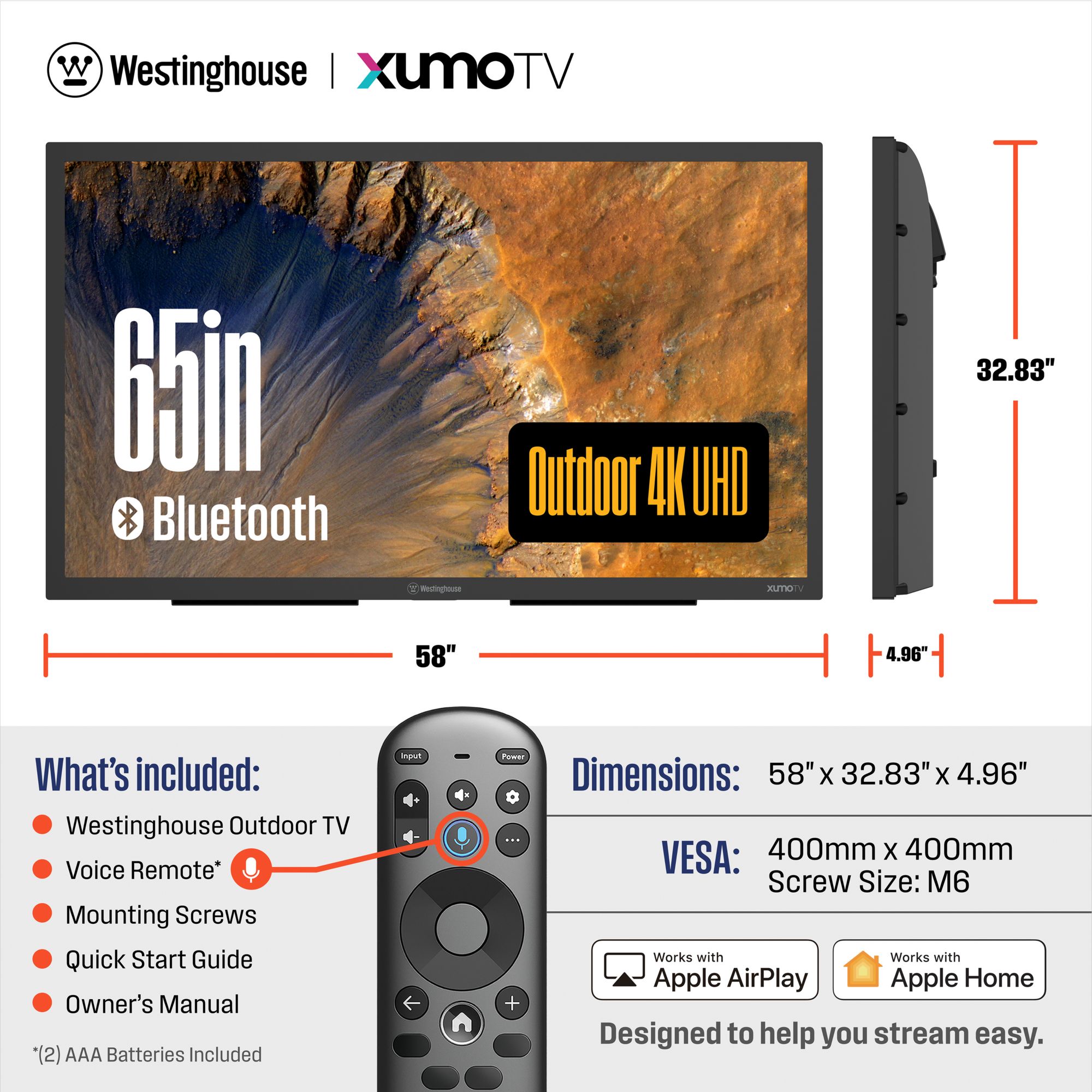 Westinghouse 65" UHD Outdoor Smart TV with 3-Year Coverage