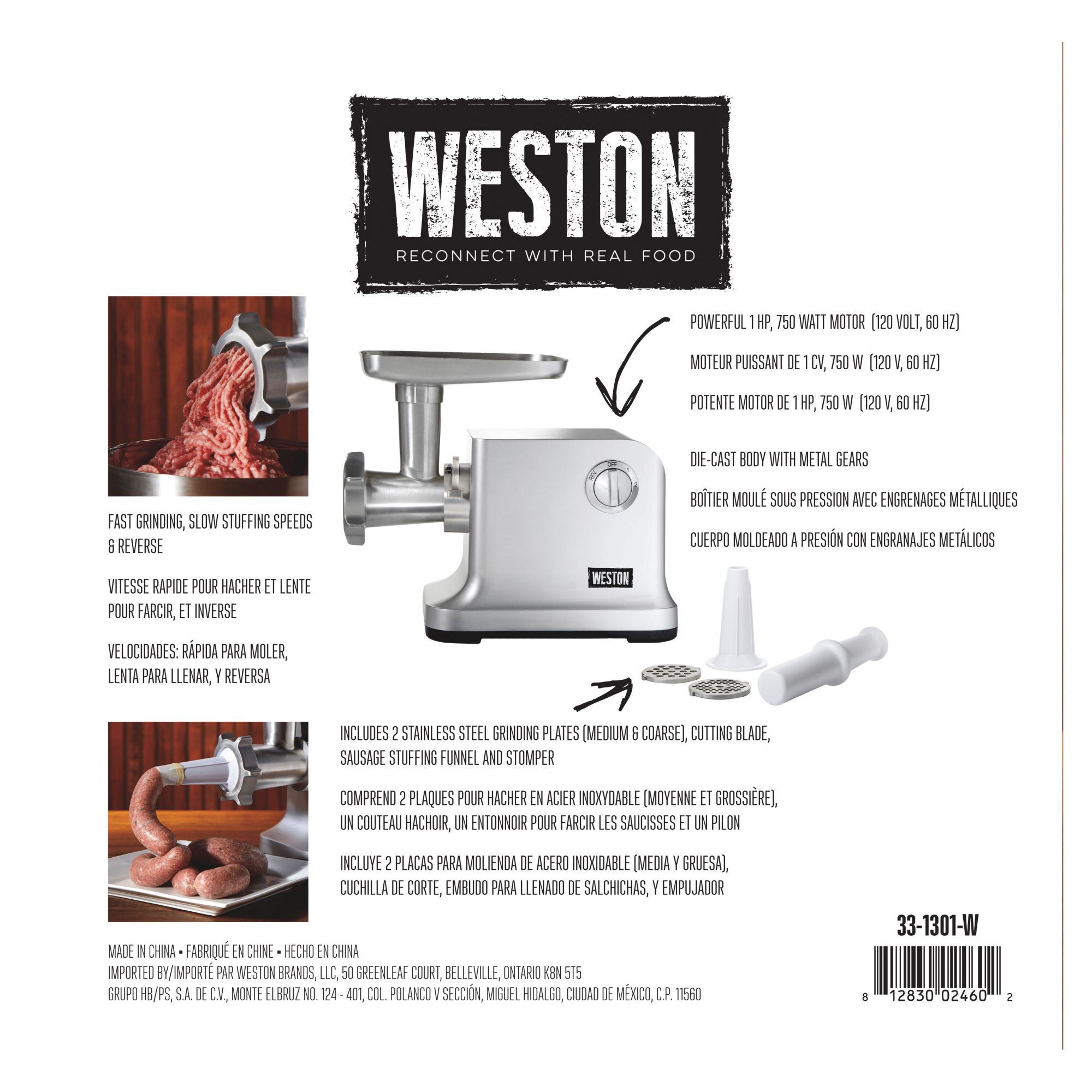Weston Meat Grinder and Sausage Stuffer, 750-Watt