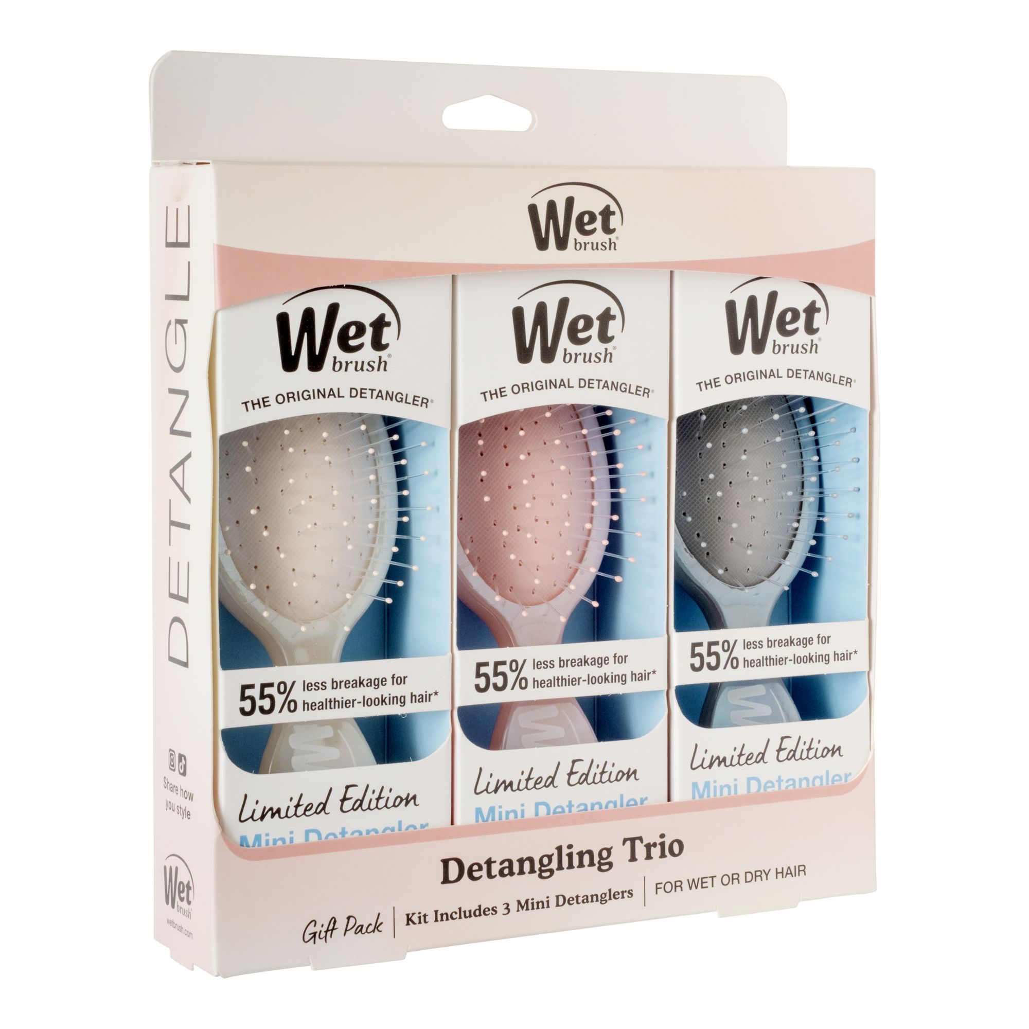 Includes mini detangling brushes in bronze, chrome, and cream colors