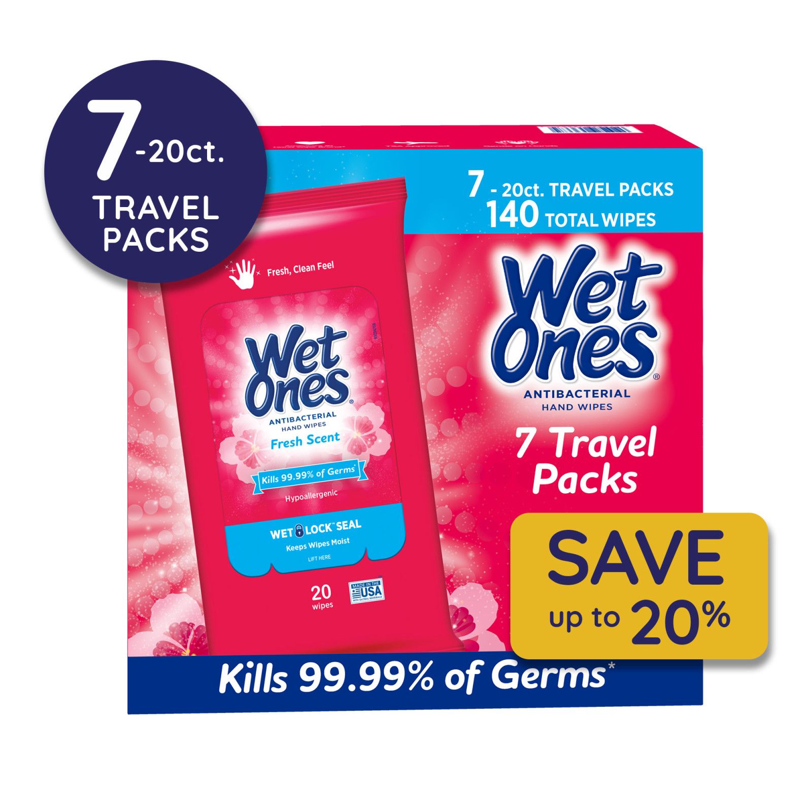 Wet Ones Antibacterial Hand Wipes Travel Pack - Fresh Scent, 7 pk./20 ct.