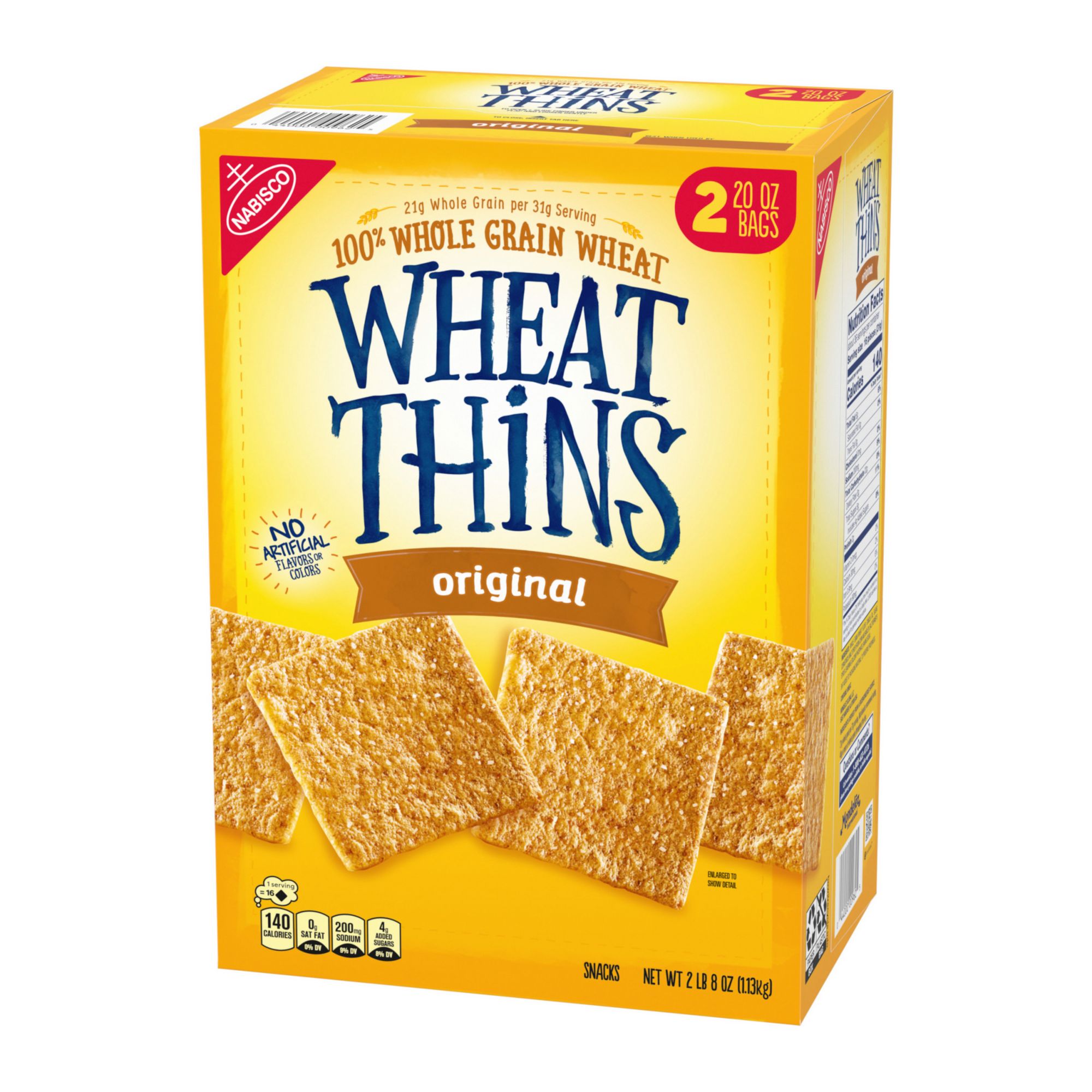 One 40 oz. box including two 20 oz. bags of Wheat Thins Original Snacks, Whole Grain Wheat Crackers (packaging may vary)