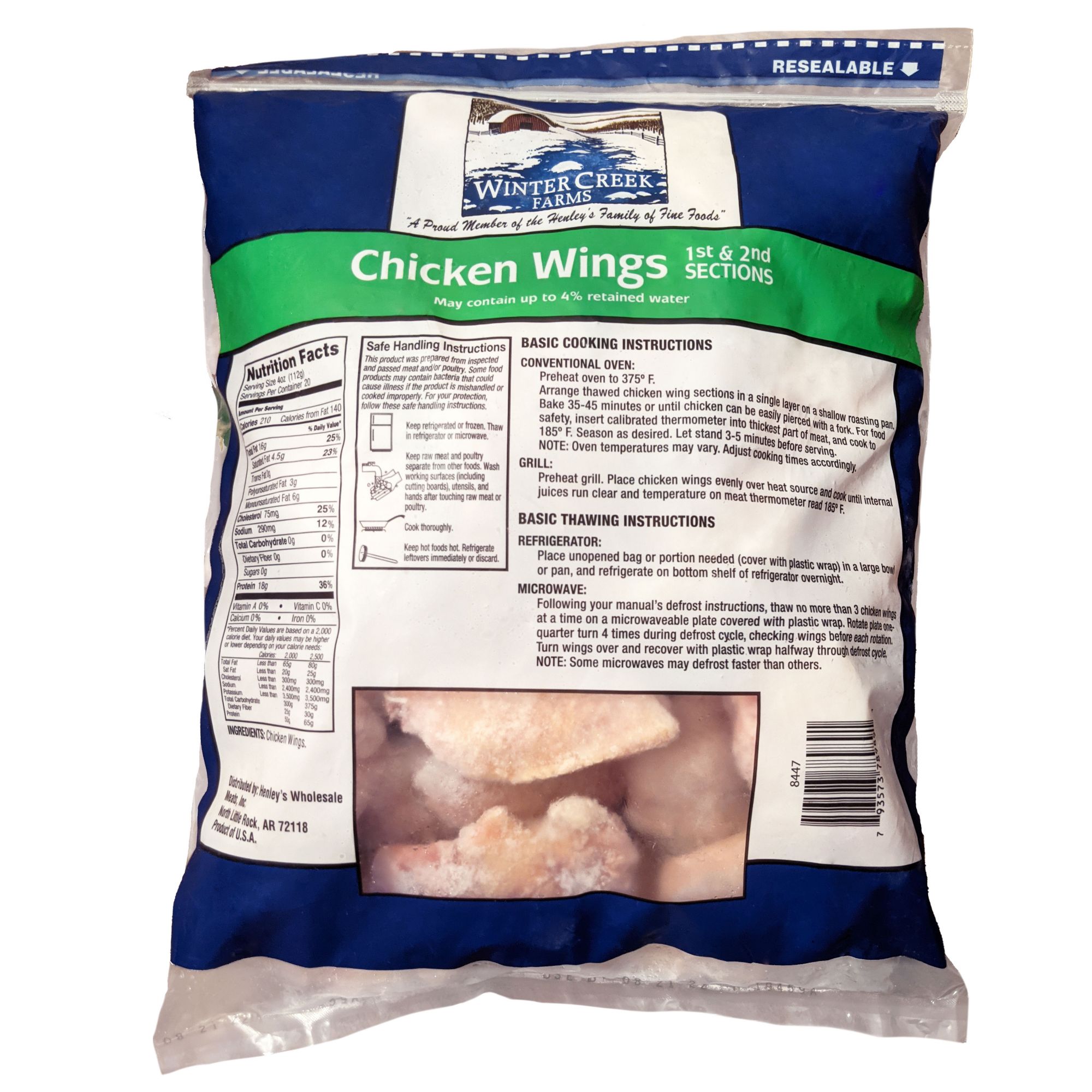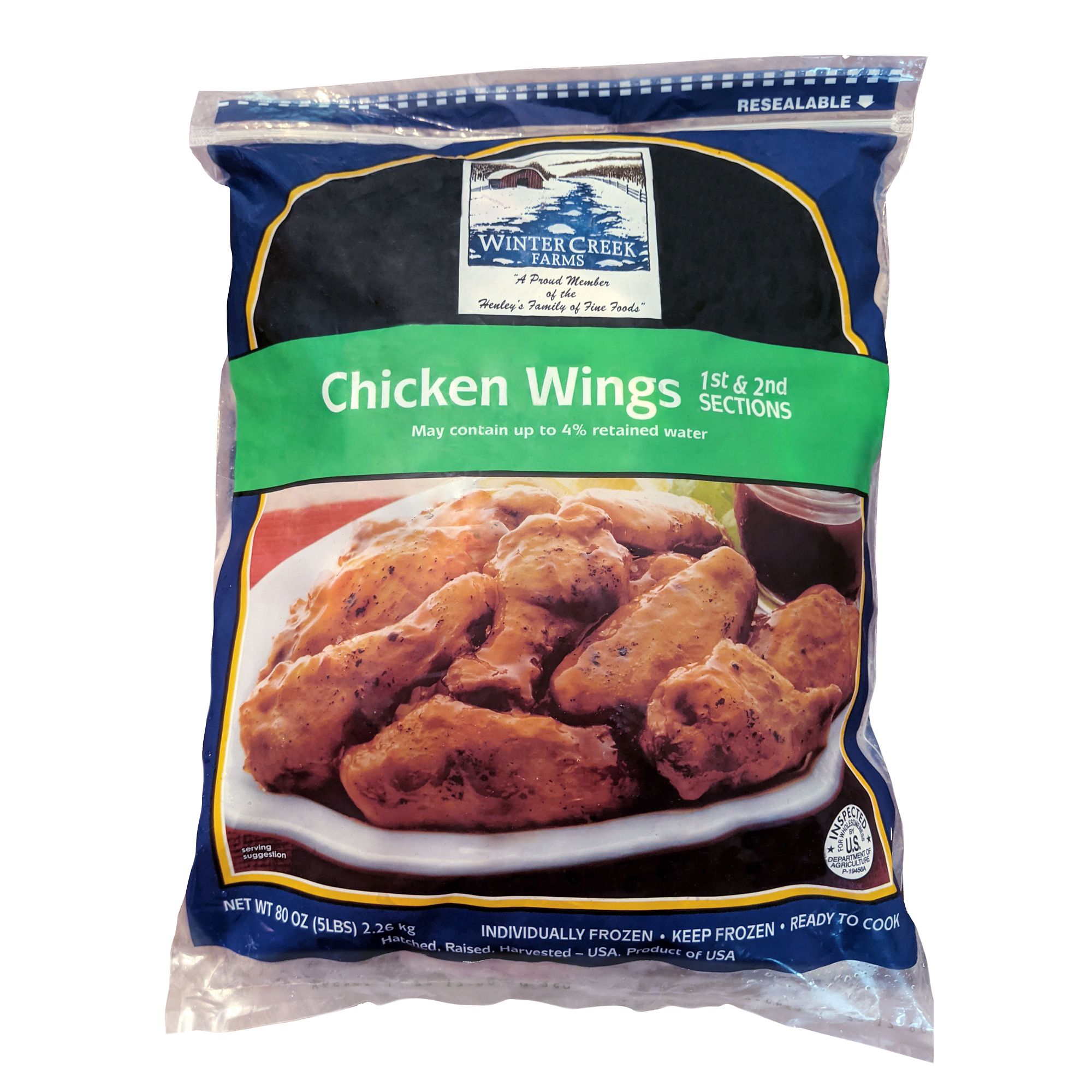 Winter Creek Farms Party Wings are individually quick frozen wings and ready to cook. Portion them out as you need or prepare the entire bag for a party. Keep frozen till you are ready to make your favorite wing recipes. Winter Creek Wings cook quickly and are easy to serve for family and friends. They are a great source of protein. May contain up to 4% retained water. No pump or solution. Product of USA.