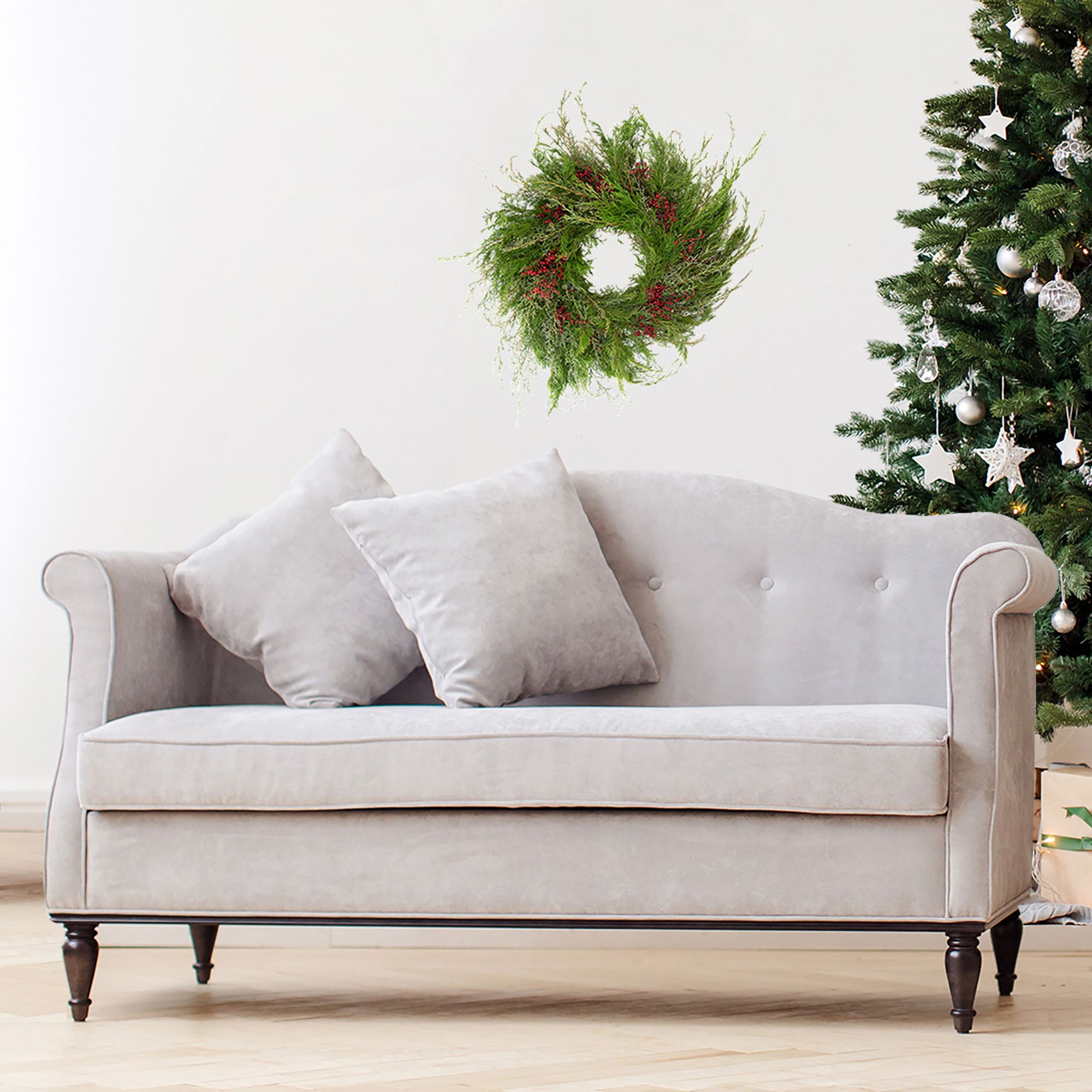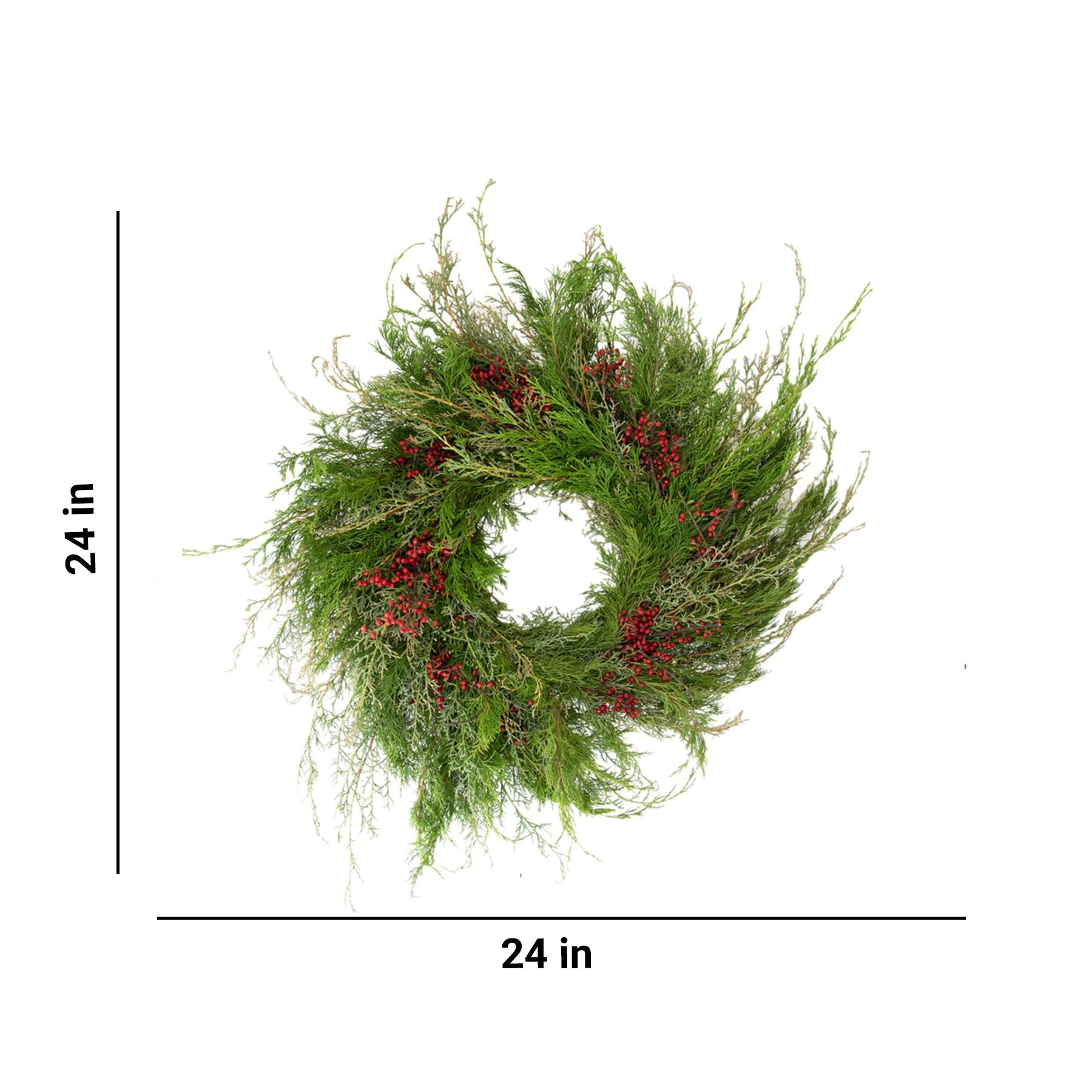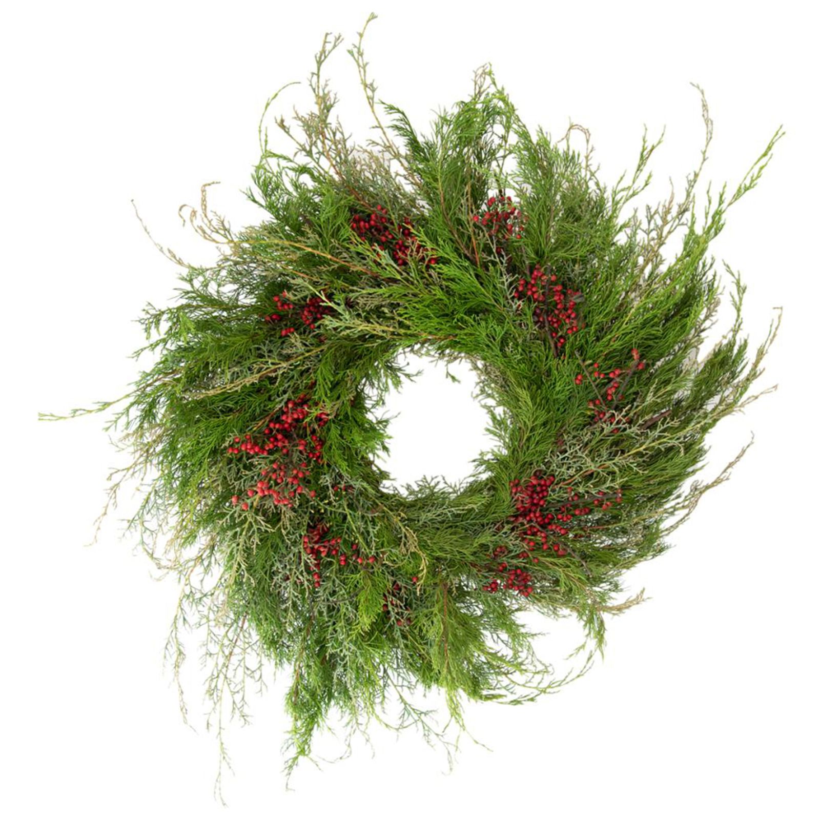 Made with fresh Green Cedar, Carolina Sapphire, Red Berries
