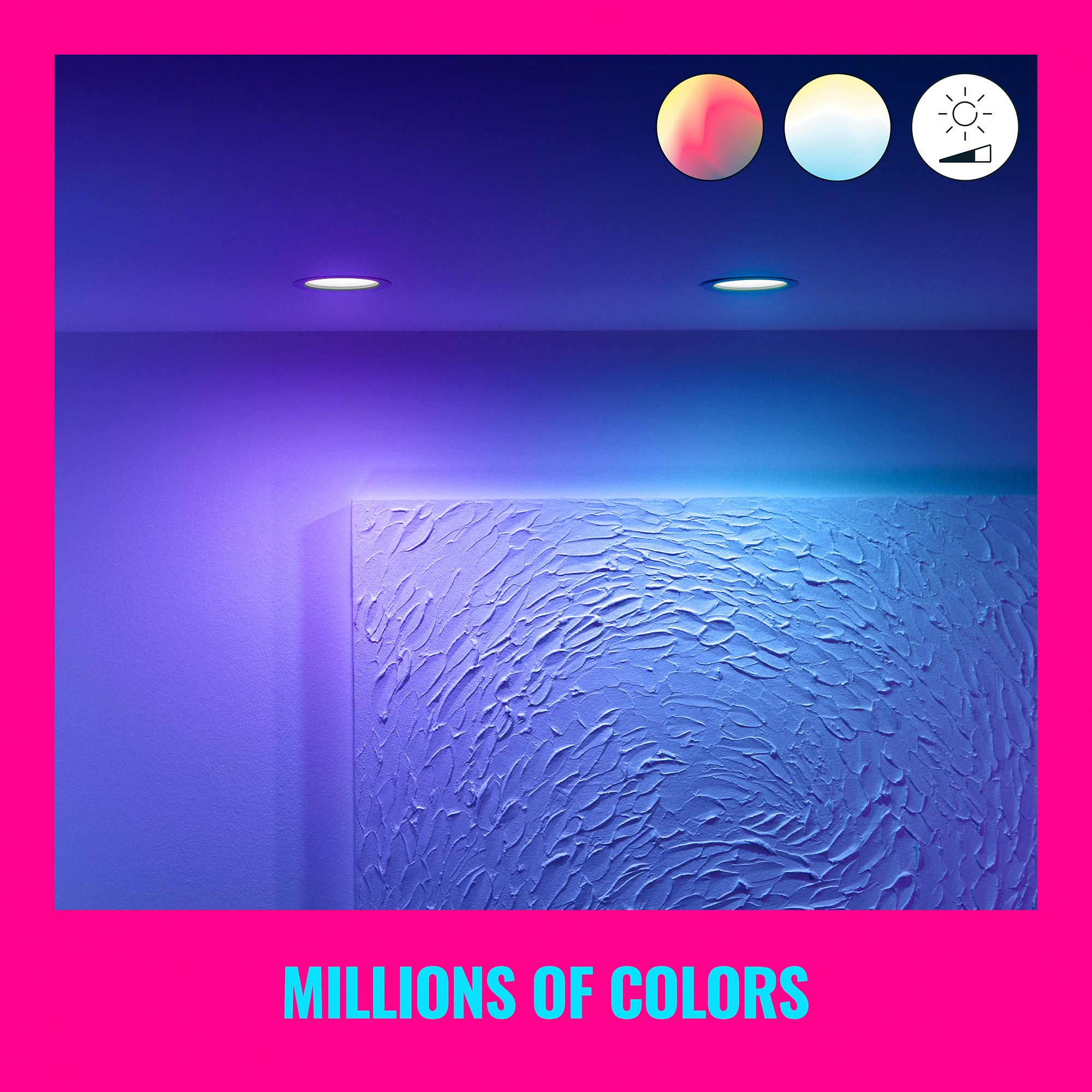 The WiZ LED full color 5/6” retrofit downlight brings smart lighting to your daily living. Fit into your ceiling to create the ambiance of your choice with 16 million colors as well as warm to cool white light. You can set a schedule to turn lights on and off according to daily or weekly routines, control with your smartphone or your voice and have remote access to your lights even when you're away. WiZ lights connect to your existing Wi-Fi, no additional hardware is needed.