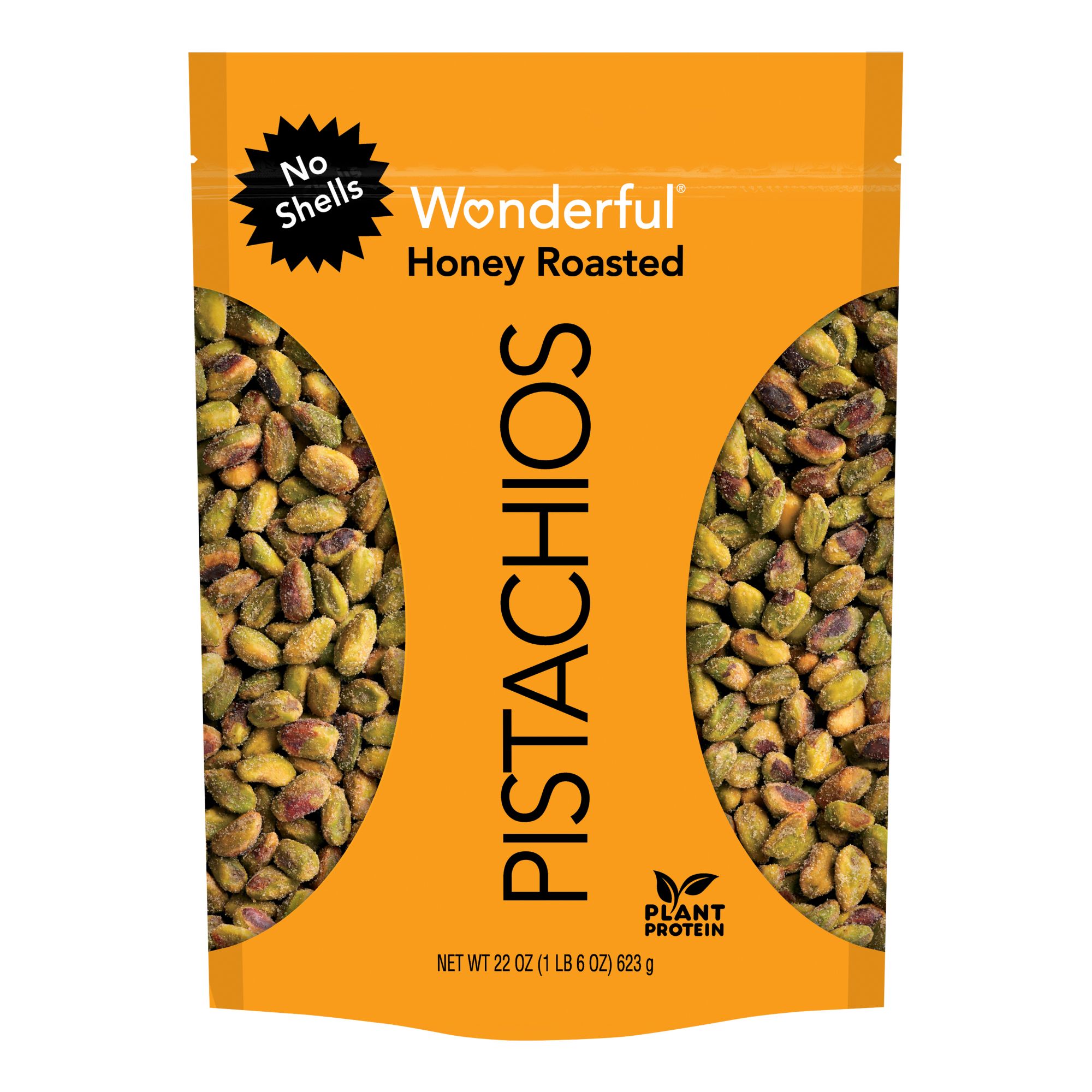 Wonderful Pistachios, No Shells Honey Roasted Nuts, Resealable Pouch, 22 oz.