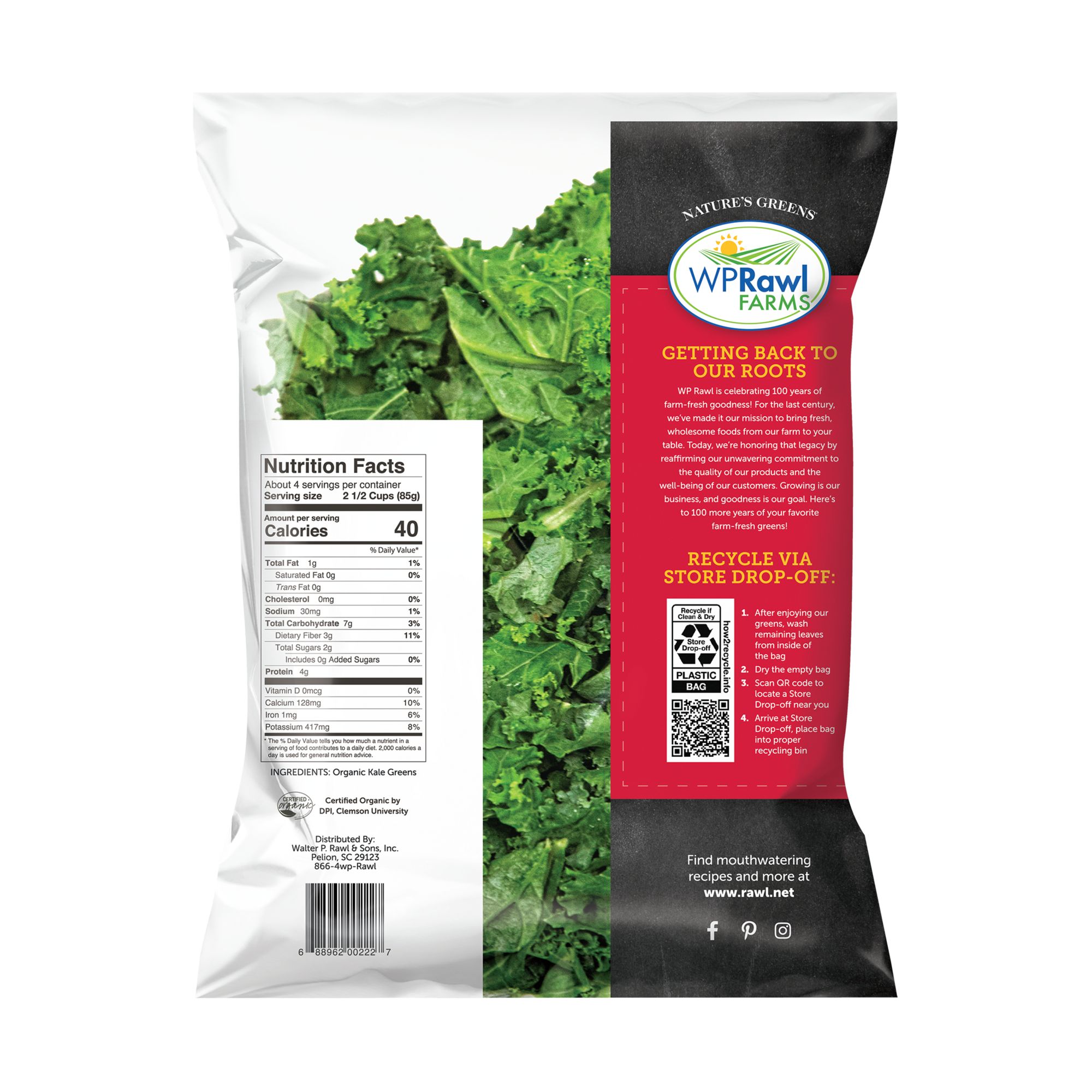 WP Rawl Farms Organic Kale Greens are hand harvested and triple washed to deliver exceptional quality, flavor, and convenience in every bag. Grown with care using organic practices, these preservative free greens are ready to cook and serve, making it easy to add wholesome nutrition to any meal. Carefully selected for tender leaves and rich color, our organic kale delivers a satisfying texture whether sautéed, blended into smoothies, or added to soups and salads. Packed with essential vitamins, minerals, and antioxidants, WP Rawl Farms Organic Kale Greens offer a nutrient dense option to support a healthy lifestyle.