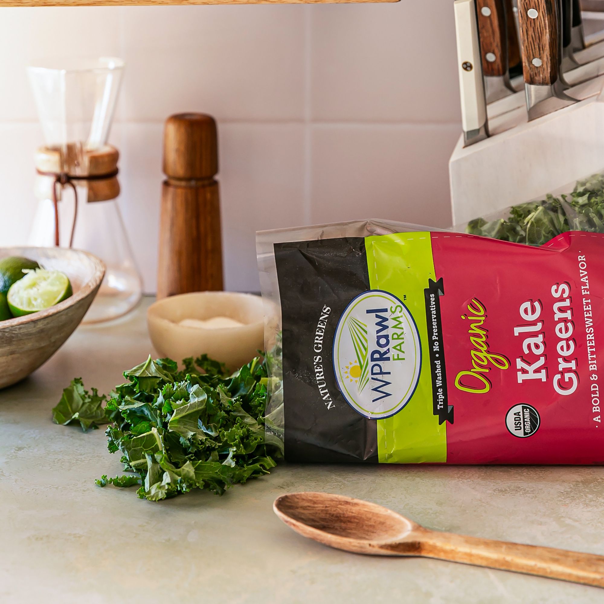 Includes triple washed Organic Kale, 12 oz.