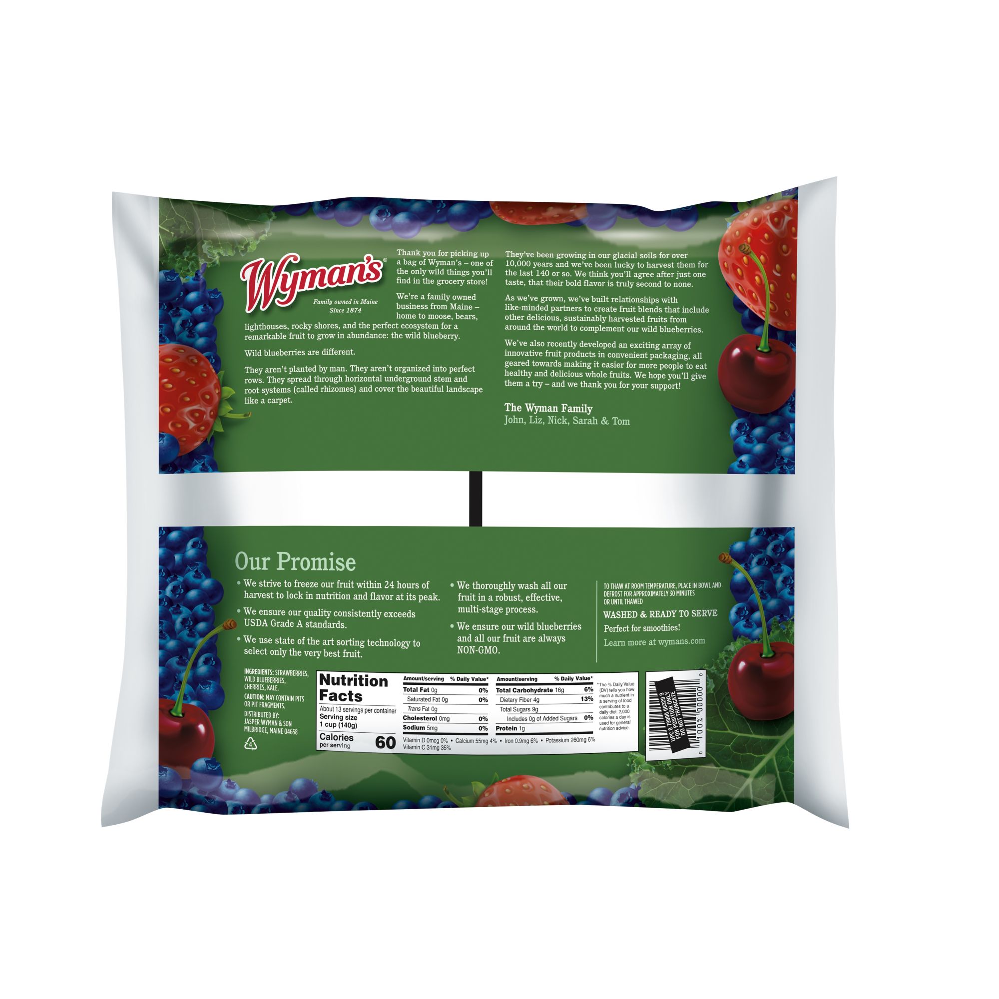 Perfect blend of Wyman's fresh-frozen wild blueberries, strawberries and cherries with kale Toss this nutritious mix into a blender and customize with your favorite smoothie ingredients to enjoy a healthy flavor fix Contains Wyman's wild blueberries with two times the antioxidants of ordinary blueberries