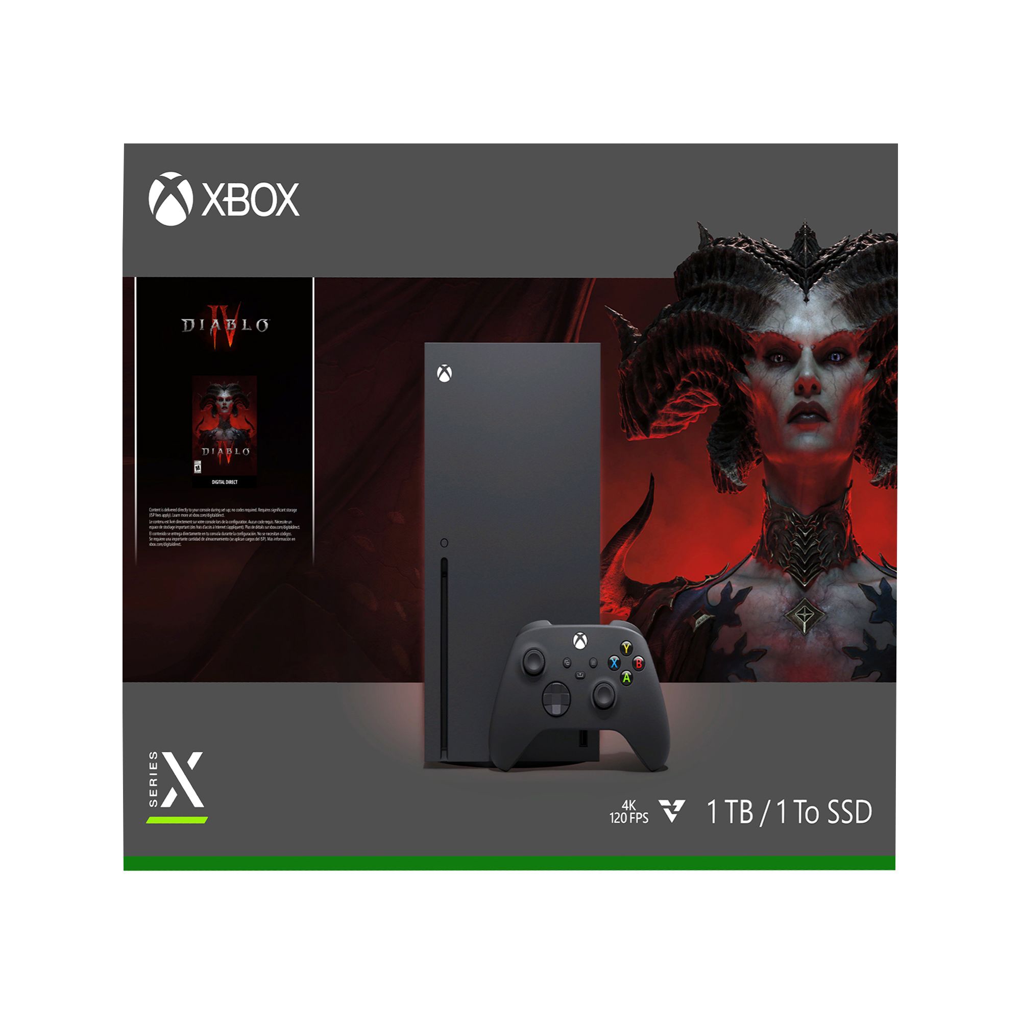 Join the endless battle between the high heavens and the burning hells with the Xbox Series X with Diablo IV Bundle. Forge your path through the corrupt lands of sanctuary with 12 teraflops of raw graphic processing power. Slay ceaseless demons in immersive, action-packed combat powered by a 1 TB custom SSD. Join fellow adventurers, retake besieged towns, and delve into nightmarish dungeons in hyper-realistic 4K. Make the most of every gaming minute as all Hell breaks loose with lightning-fast load times and an expansive open world—all powered by Xbox velocity architecture. Fight for the fate of sanctuary with the fastest, most powerful Xbox ever