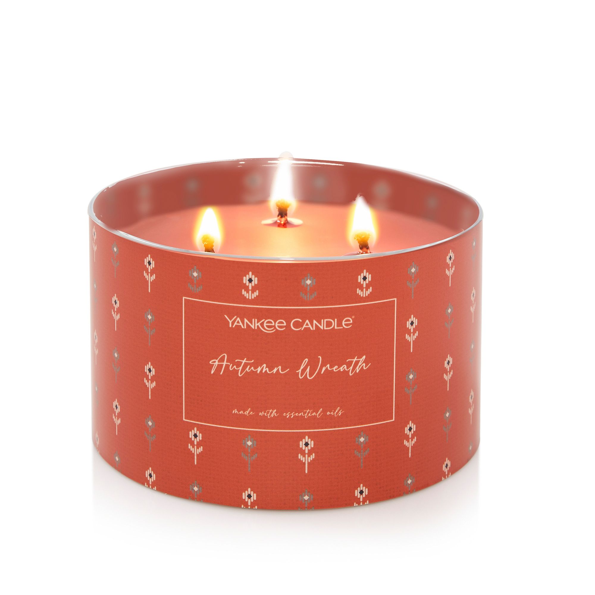 These candles make perfect gifts with their unique designs and metal lids. Experience a modern take on cross-stitch patterns in muted autumnal colors paired with fan-favorite fragrances that perfectly set the mood for the season. Made with three wicks for an even more welcoming ambiance.