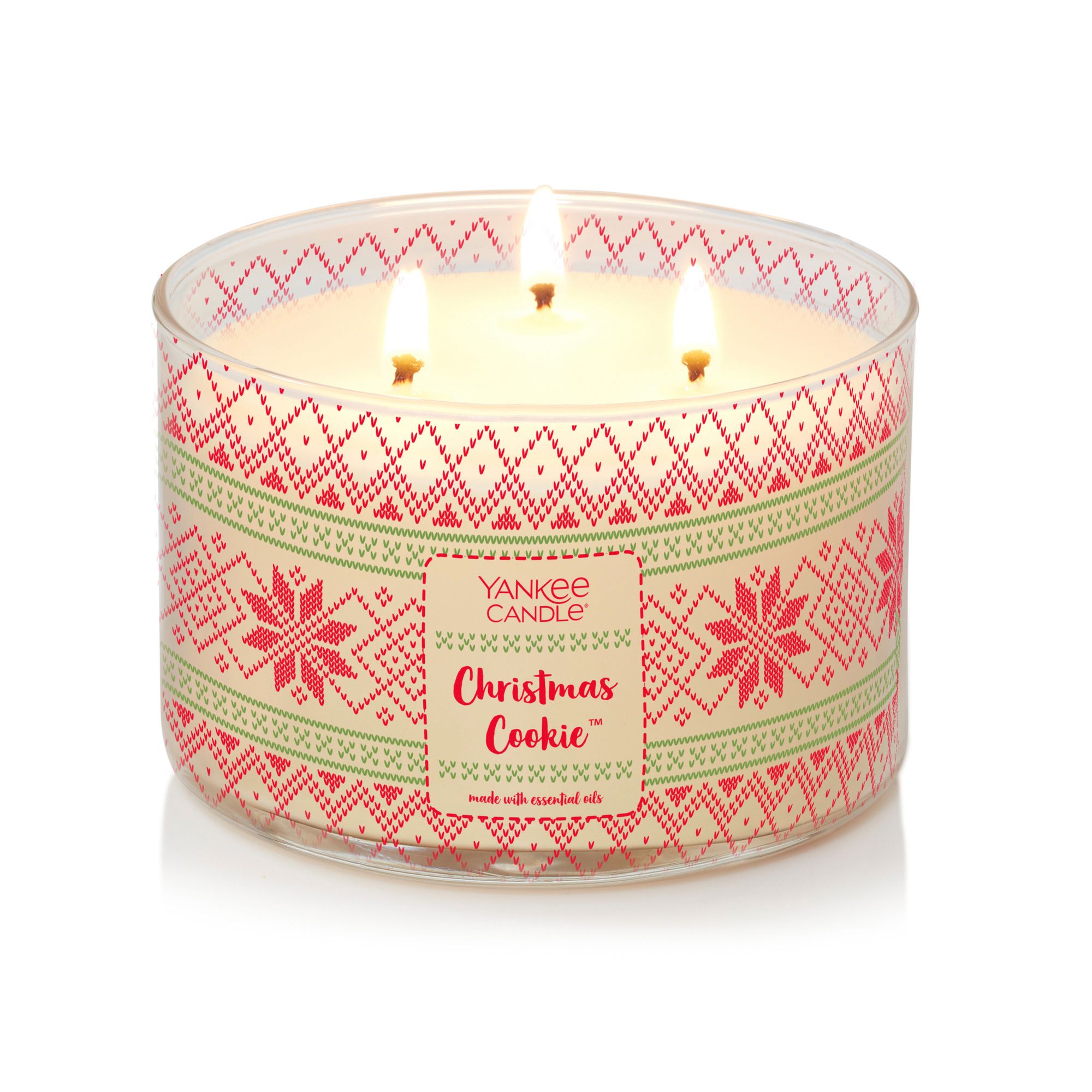 These candles make perfect gifts with their unique designs and metal lids. Get cozy with a festive assortment of classic holiday sweater patterns and cross-stitch textures accompanying your favorite holiday fragrances. A gold-metallic lid adds the perfect finishing touch. Made with three wicks for even more welcoming ambiance.
