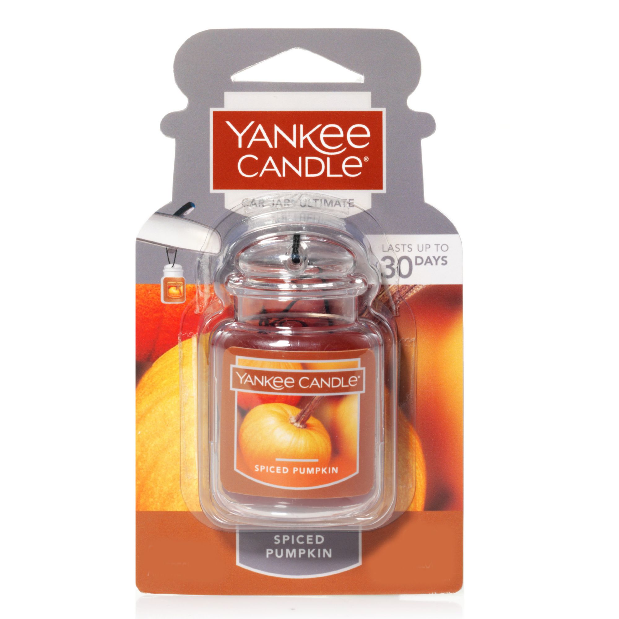 Pumpkins baked in simmering spices of clove, nutmeg and cinnamon, and sweetened with brown sugar make up the Yankee Candle Spice Pumpkin Car Jar Ultimate. With this fragrance, you can bring your favorite scent on the road with you to freshen your commute and those endless errands or road trips with a premium fragrance that neutralize odors, too. When the fragrance shrinks below the label, it's time for a new one.