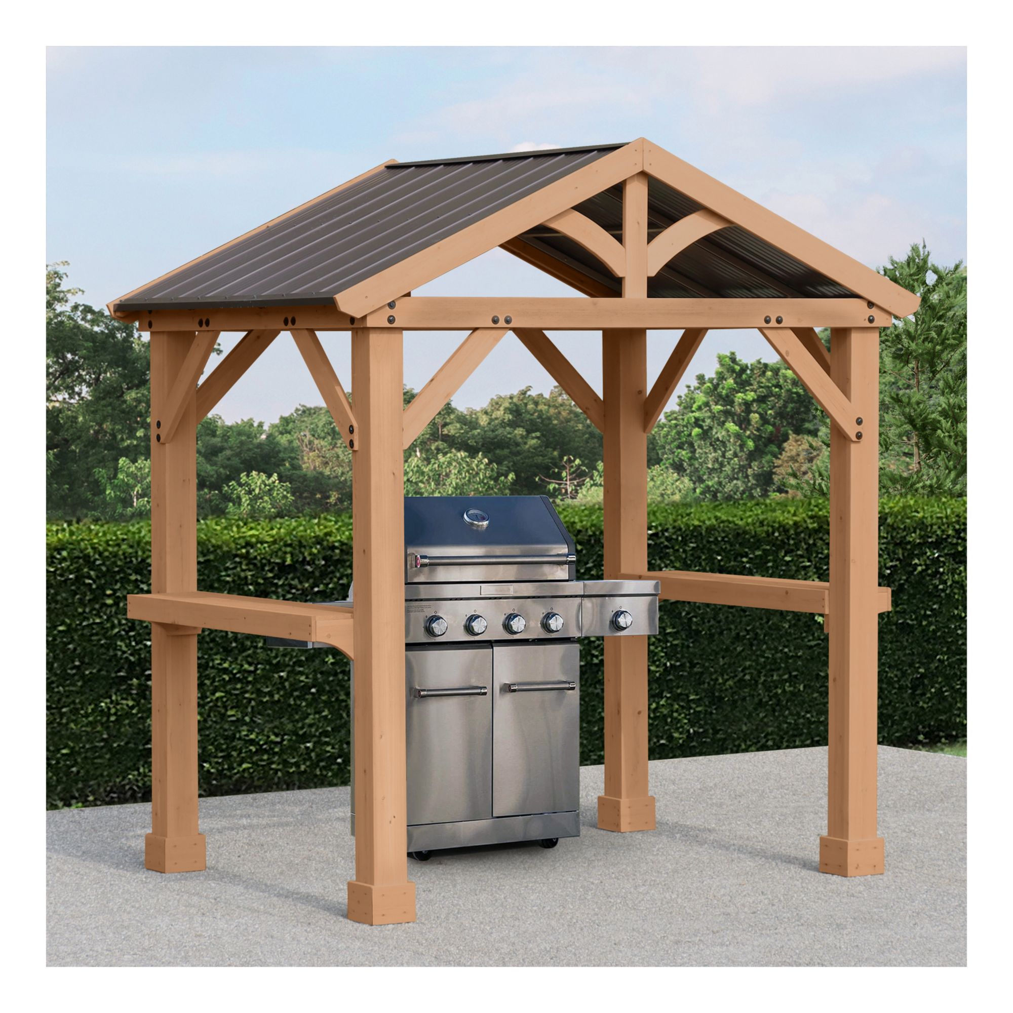 Yardistry Meridian 8'L x 5'8"W x 8'10"H Grilling Pavilion - Coffee Brown