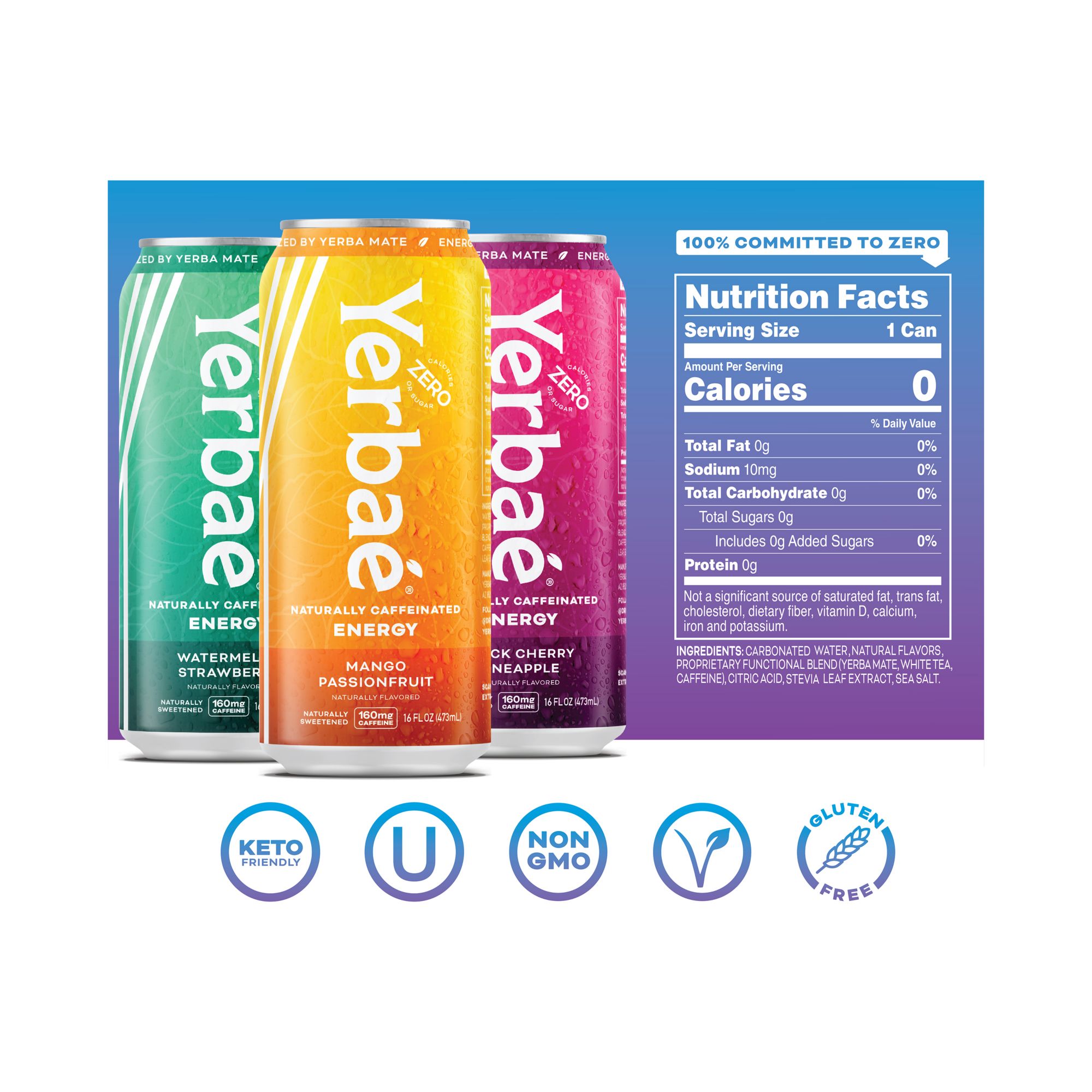 Includes multi-pack of yerba mate based energy drinks, 15 pk./16 oz. each can