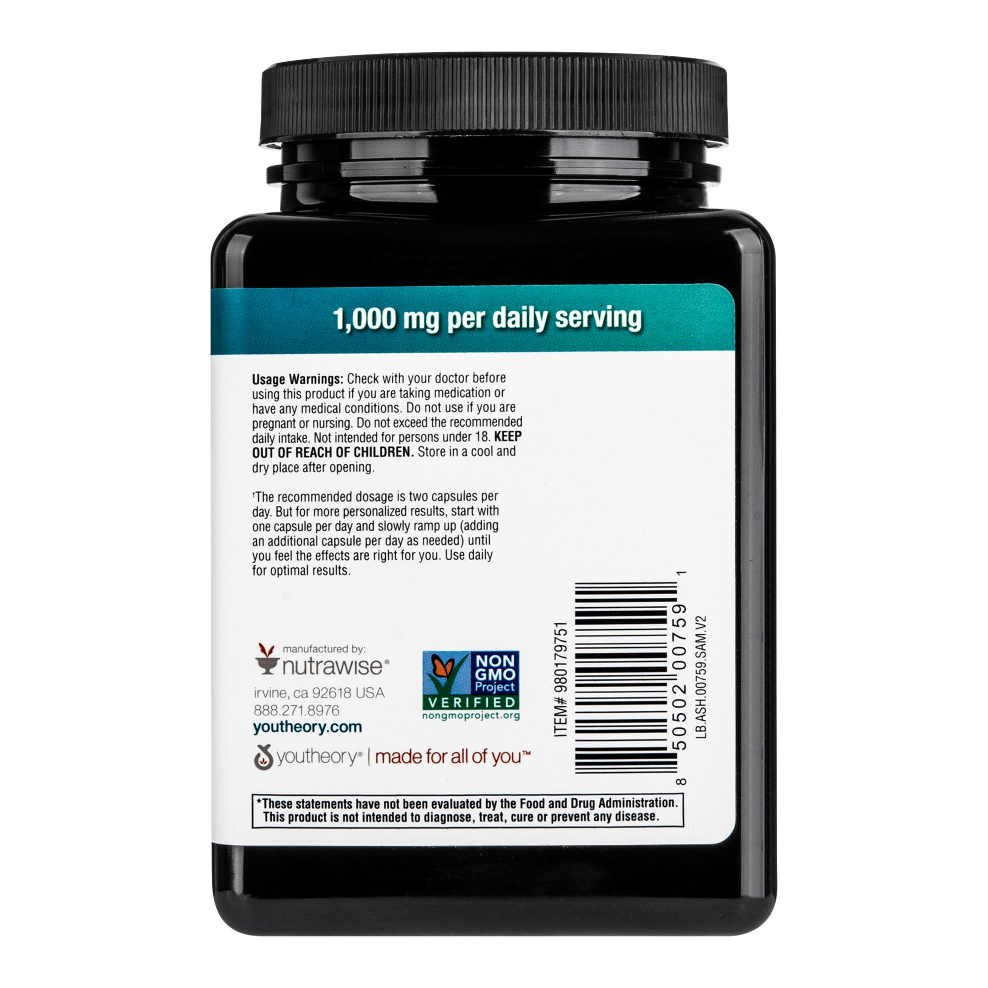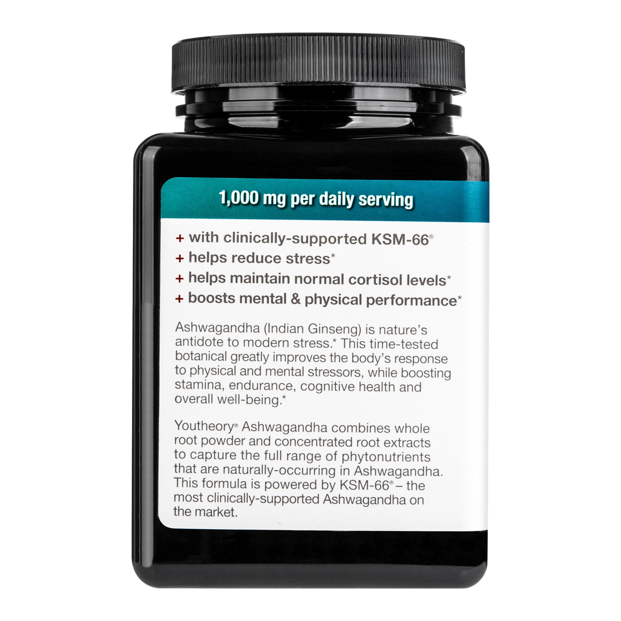 Youtheory Ashwagandha Vegetarian Capsules supports a healthy response to everyday stress, over-work and fatigue. Youtheory high efficacy Ashwagandha extract with KSM-66 is a unique Ashwagandha formula that supports stress management, aerobic performance, mood and cognitive health. Ashwagandha (commonly called Indian Ginseng) is one of the most highly prized botanicals in the ancient Ayurvedic system of India. It is often described as an "adaptogen" because it helps the body successfully adapt to stressful conditions.* When used regularly over time, Ashwagandha helps combat stress and provides numerous benefits for the body and brain.