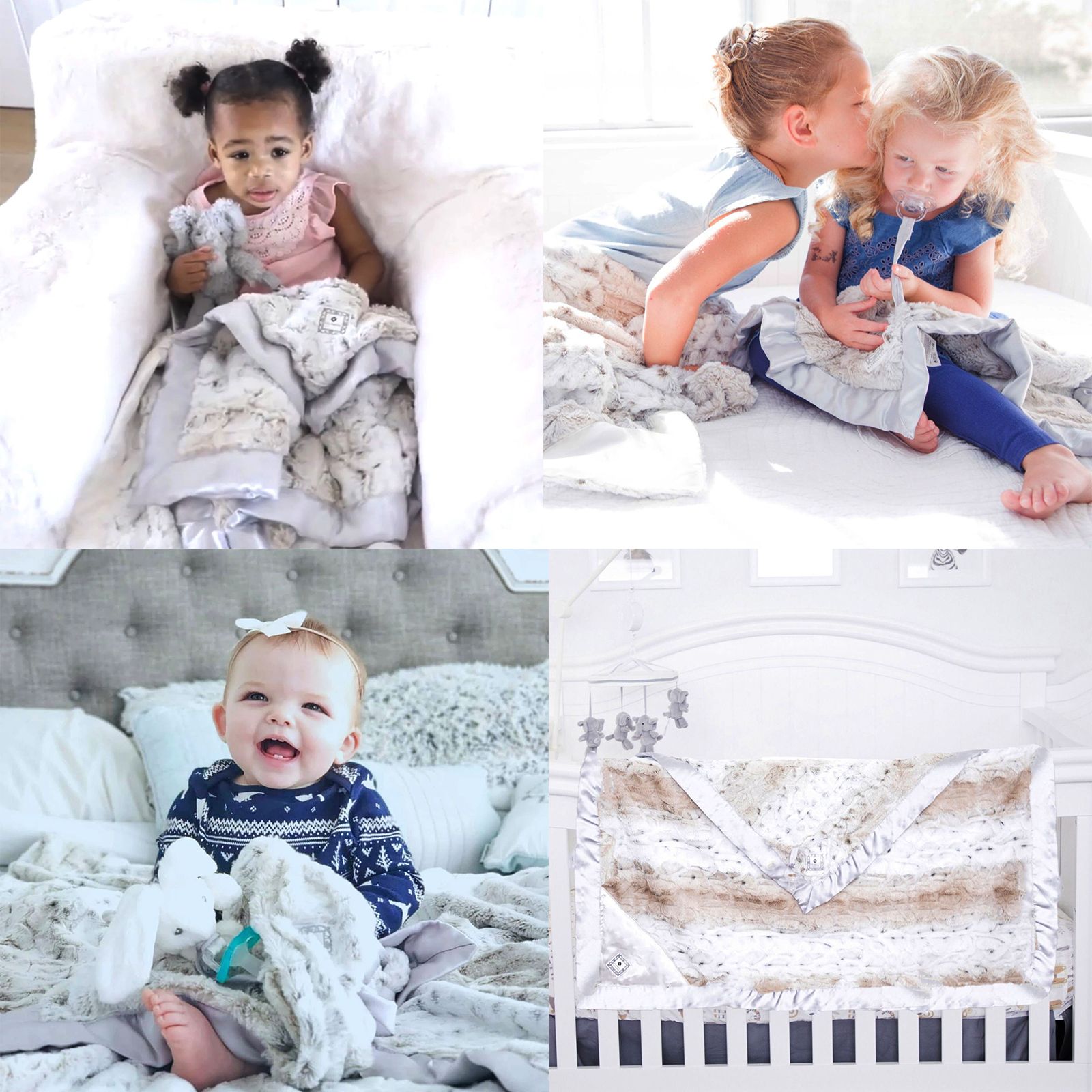 Soft, plush blanket with satin trim is perfect for the car, stroller, at home or more Featuring a pocket and strap to hold your little one's toy or pacifier 100% faux fur polyester Machine wash on cold no fabric softner, do not bleach, tumble dry low or air dry