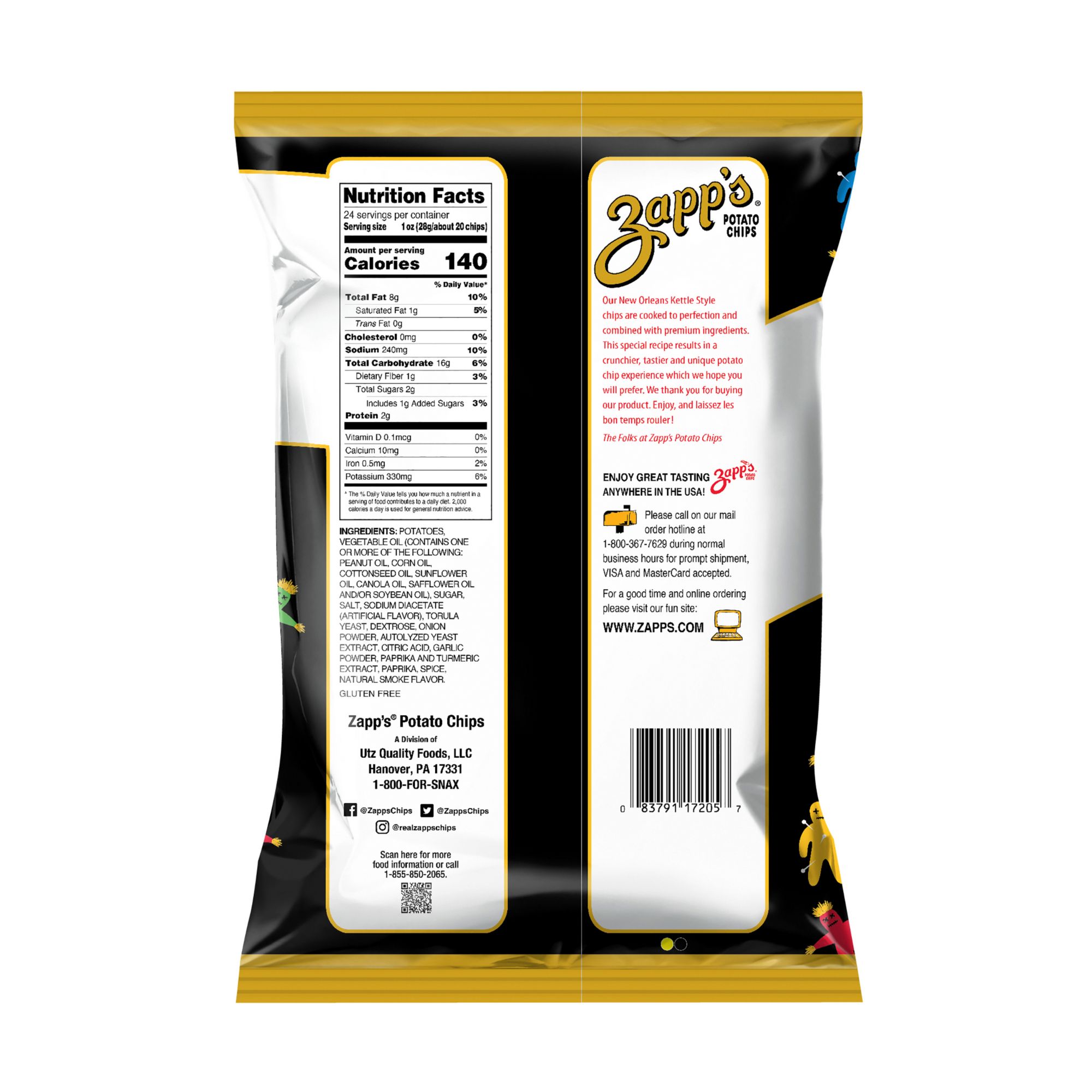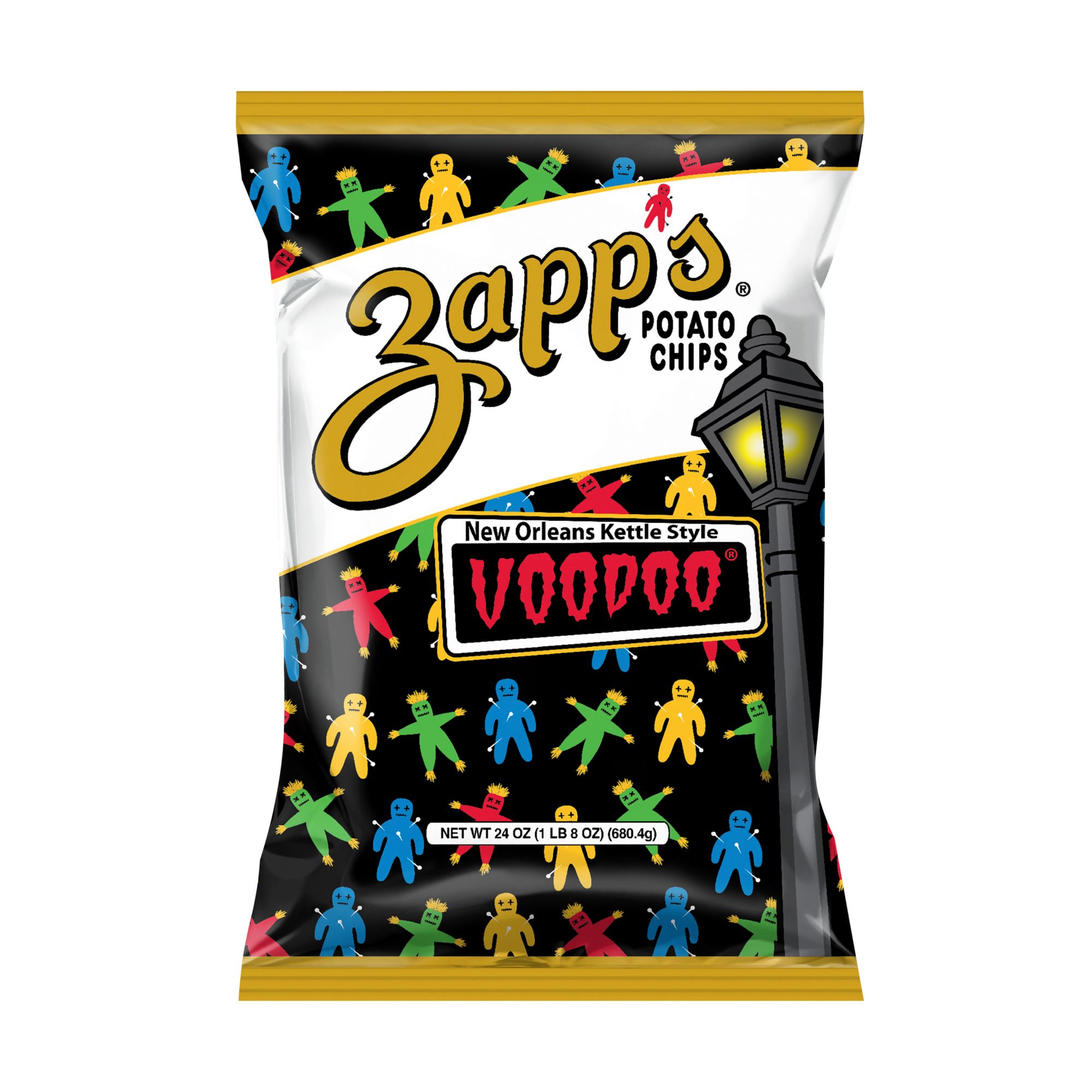 Irresistibly Strange! Distinctive boldly flavored chip that delivers the vibrant and intriguing tastes of New Orleans. This thick cut, kettle crunch has a sinfully-seasoned smoky Cajun flair of the South. A gluten free option with an indulgent flavor. The unique taste of the chip and the quirky VooDoo bag design will surely capture everyone's attention - both through their tastebuds and visually!