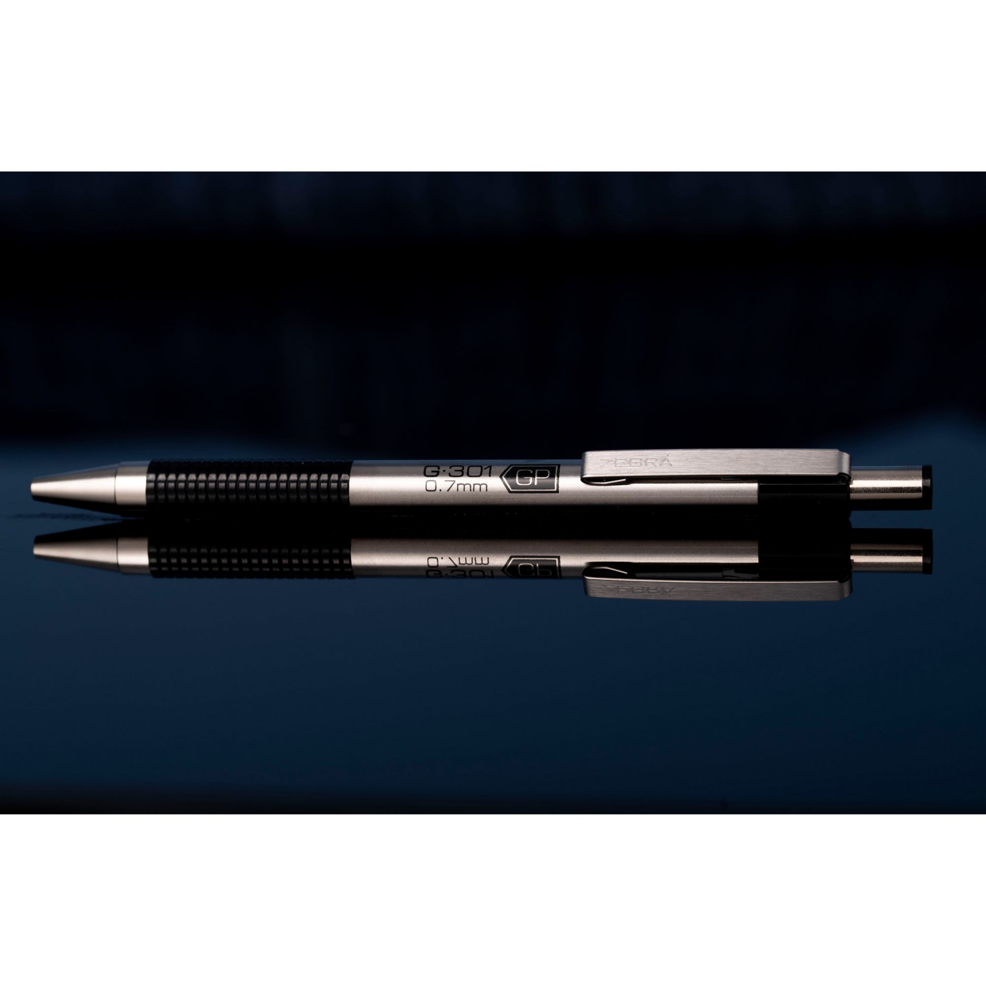 Type: steel retractable gel pen Style: G-301 Ink color(s): black Barrel color: steel Point type: medium Refillable: yes Line size: 0.7mm Eraser: no Grip type: non-slip Visible ink supply: no Tip type: medium Pocket clip: yes Count: 9 (with 6 refills)