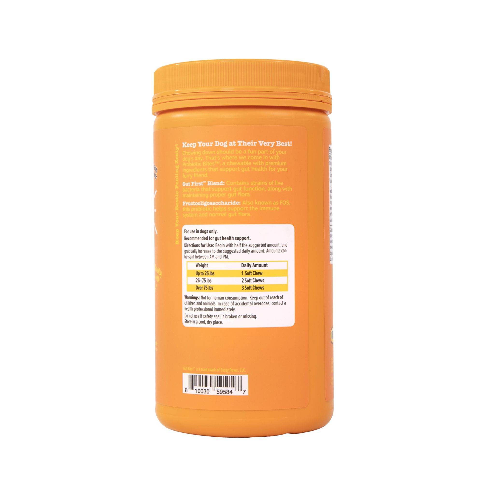 It's only natural that chowing down should be a fun part of your doggie's day. That's why pet parents like you want to aid your dog's wellness and digestive health to keep their stomach feeling Zesty! But... don't be upset! Instead, stop and rest easy because Zesty Paws is here to give pet parents like you a boost with Probiotic Bites, a soft chew supplement that will help you care for Fido's tummy.