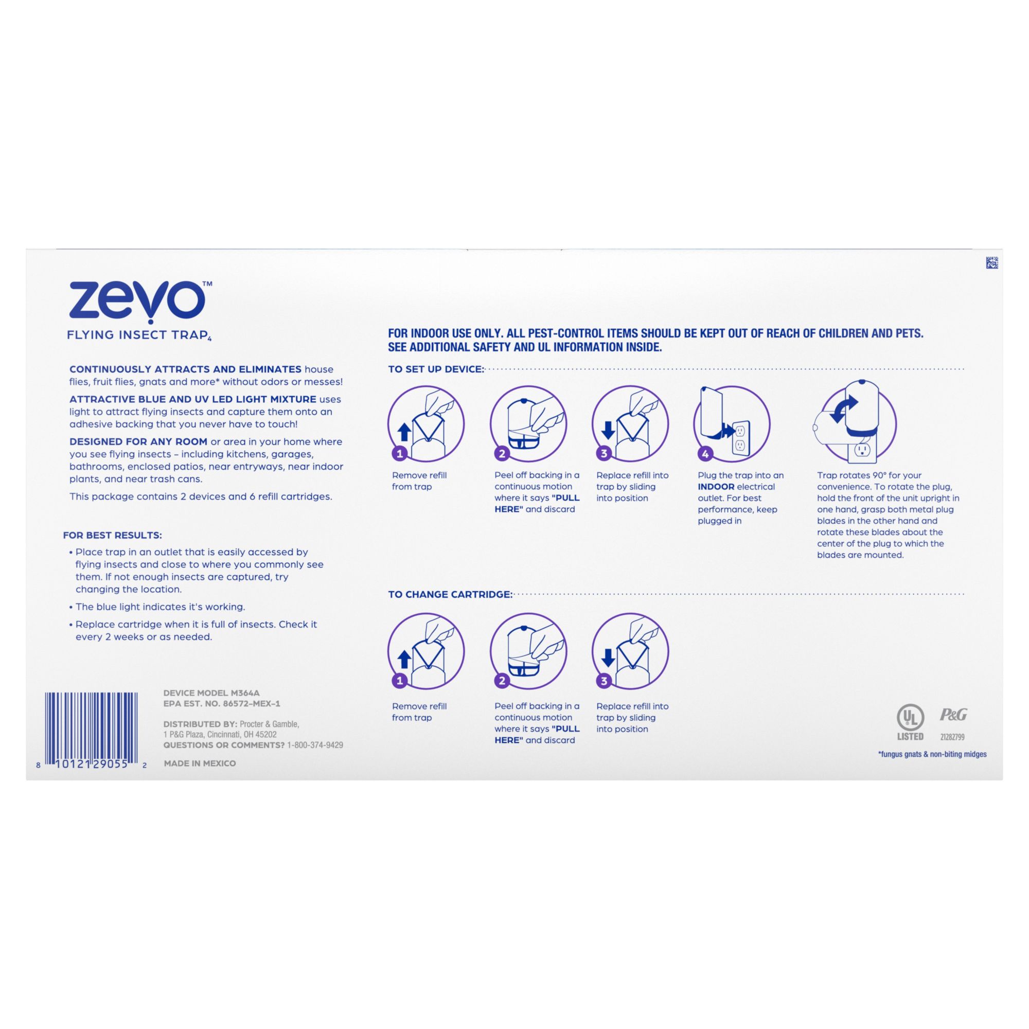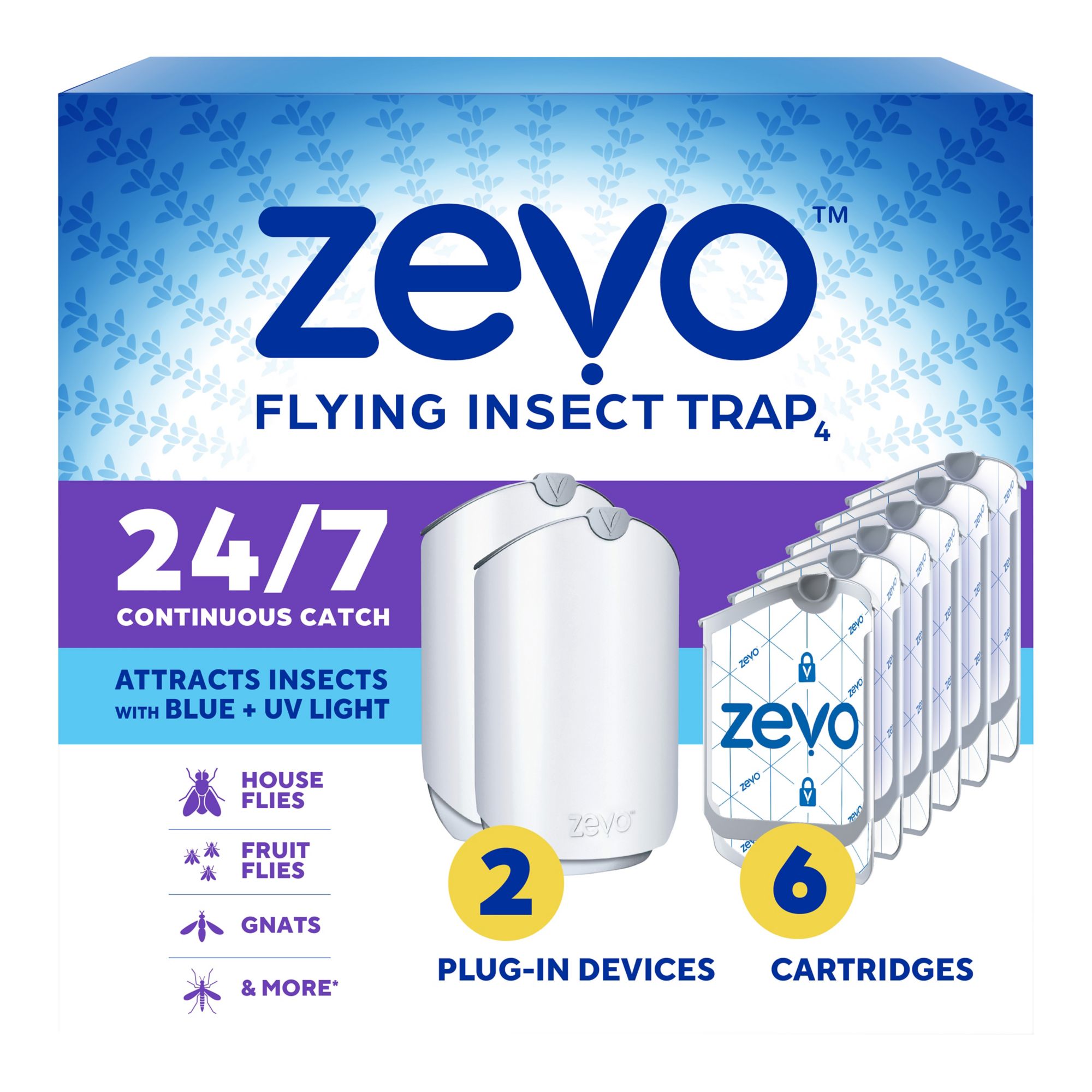 Zevo Flying Insect Trap Full Size - 2 Plug In Devices and 6 Refill Cartridges
