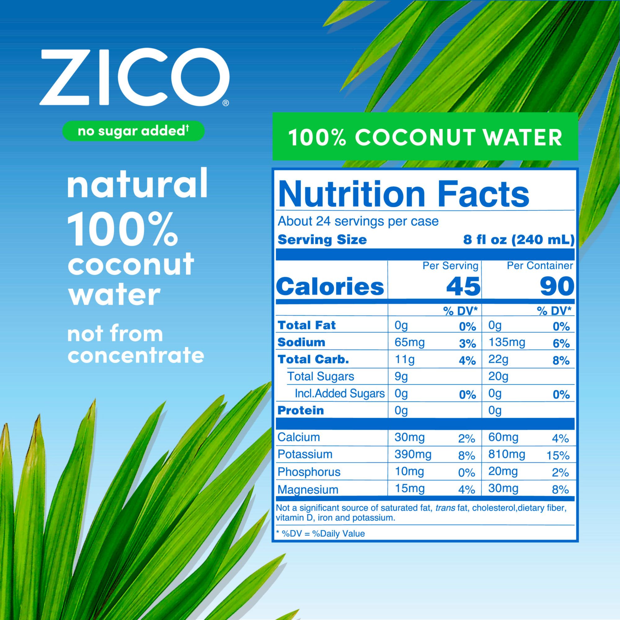 Zico Natural Coconut Water is a delicious and hydrating drink choice. Coconut water is naturally fat, gluten, and cholesterol-free, which means when you crack open a delicious ZICO, you’re making a choice you can feel good about. Founded in 2004, ZICO Beverages LLC is the maker of the original, bestselling, not from concentrate ZICO Natural Coconut Water. ZICO juices are chilled from shore to shelf and combine chilled coconut water with fruit juices, including Orange, Pineapple Mango, and Strawberry Banana. Regardless of the flavor or package size, all ZICO products naturally support hydration with five electrolytes, including as much potassium as a small banana per 8 fl oz. serving.