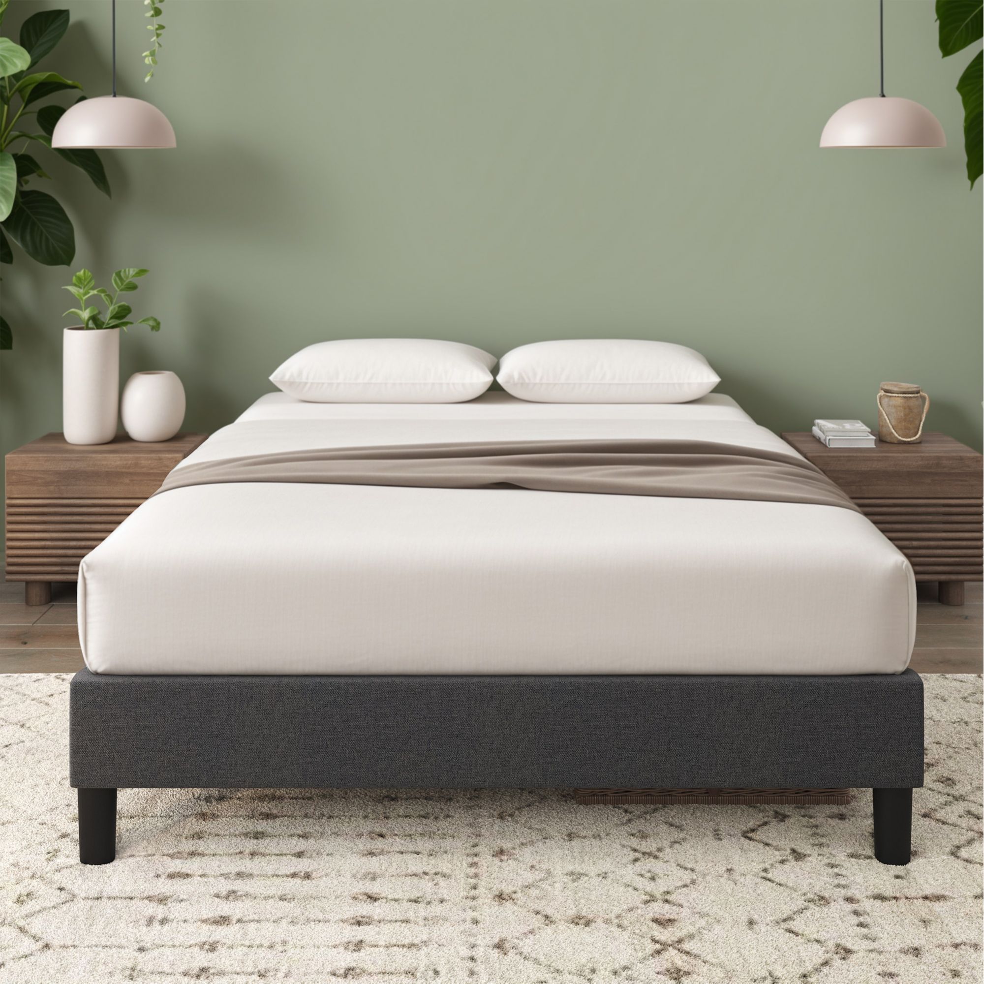 Zinus Upholstered White Geometric Headboard Platform Bed