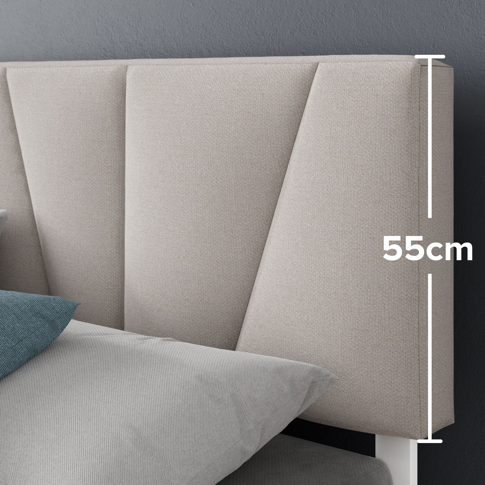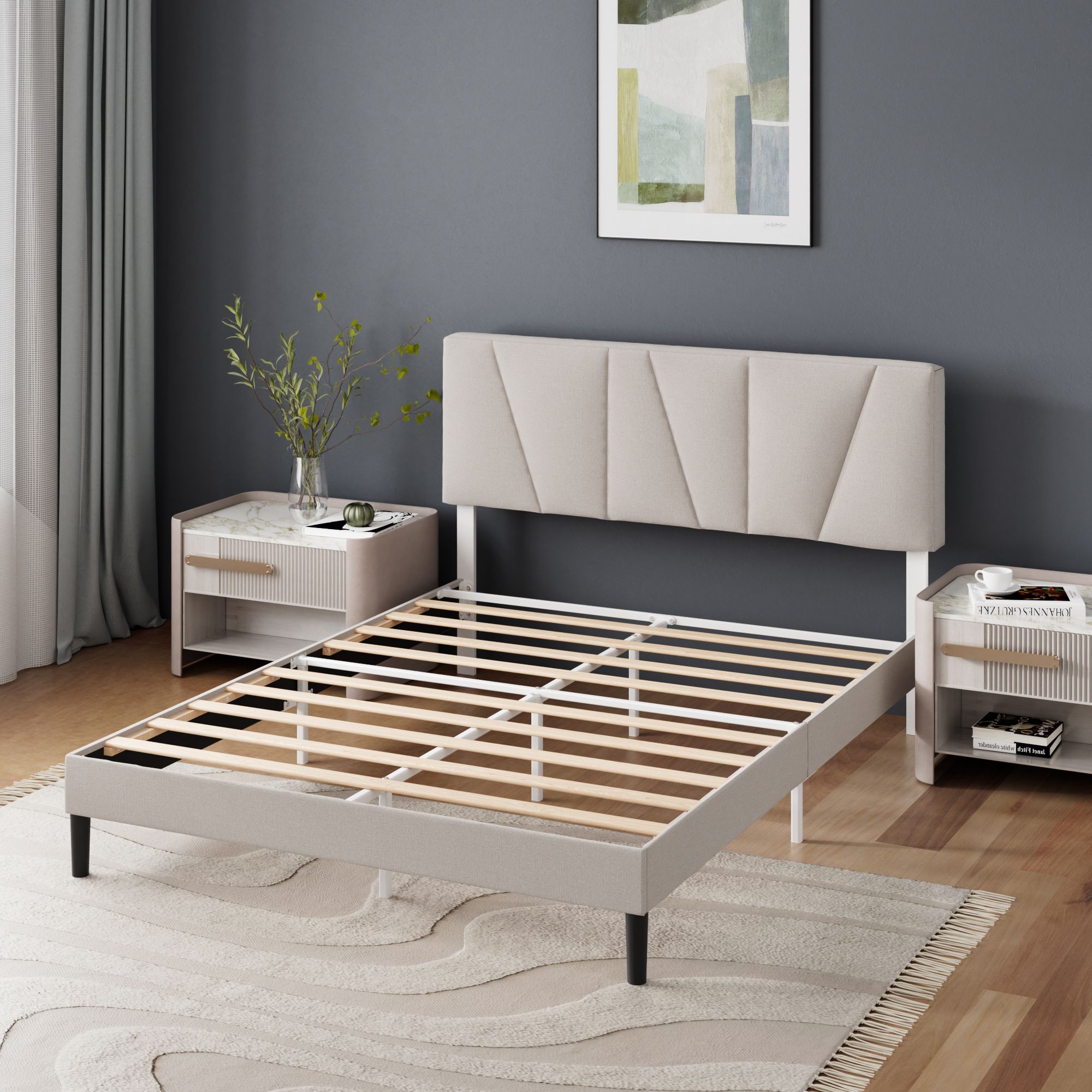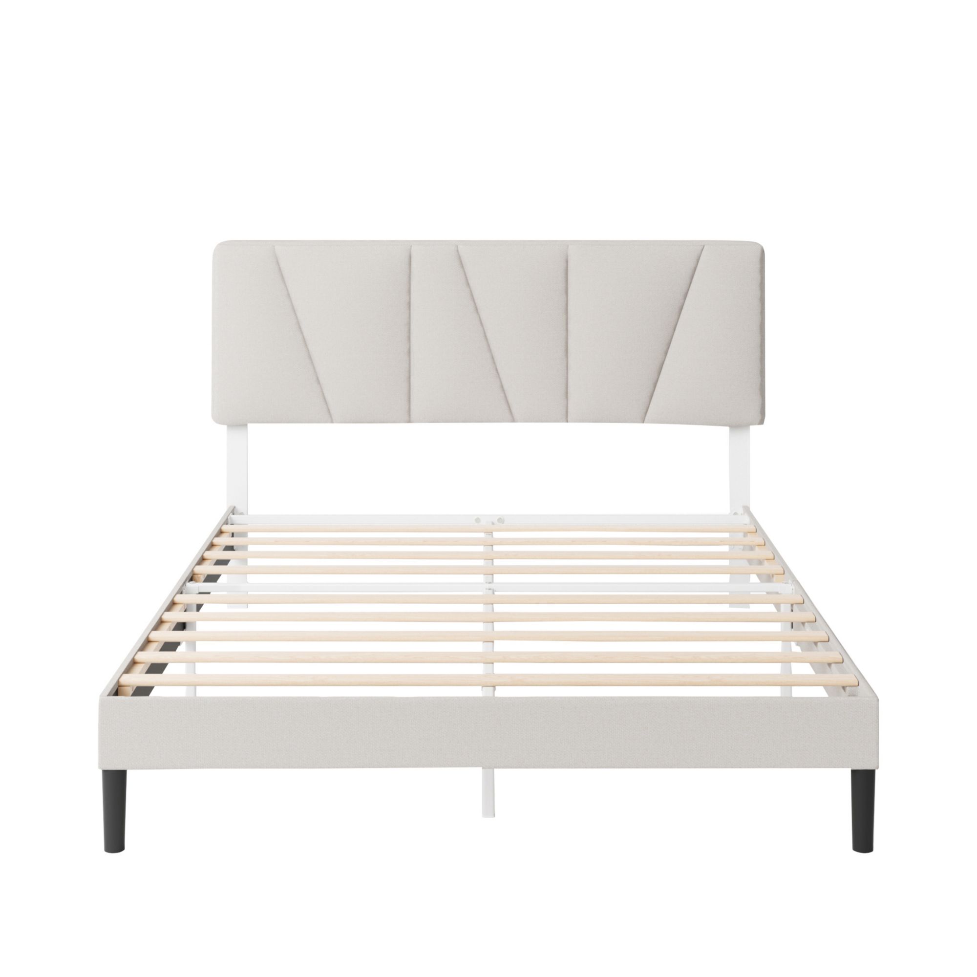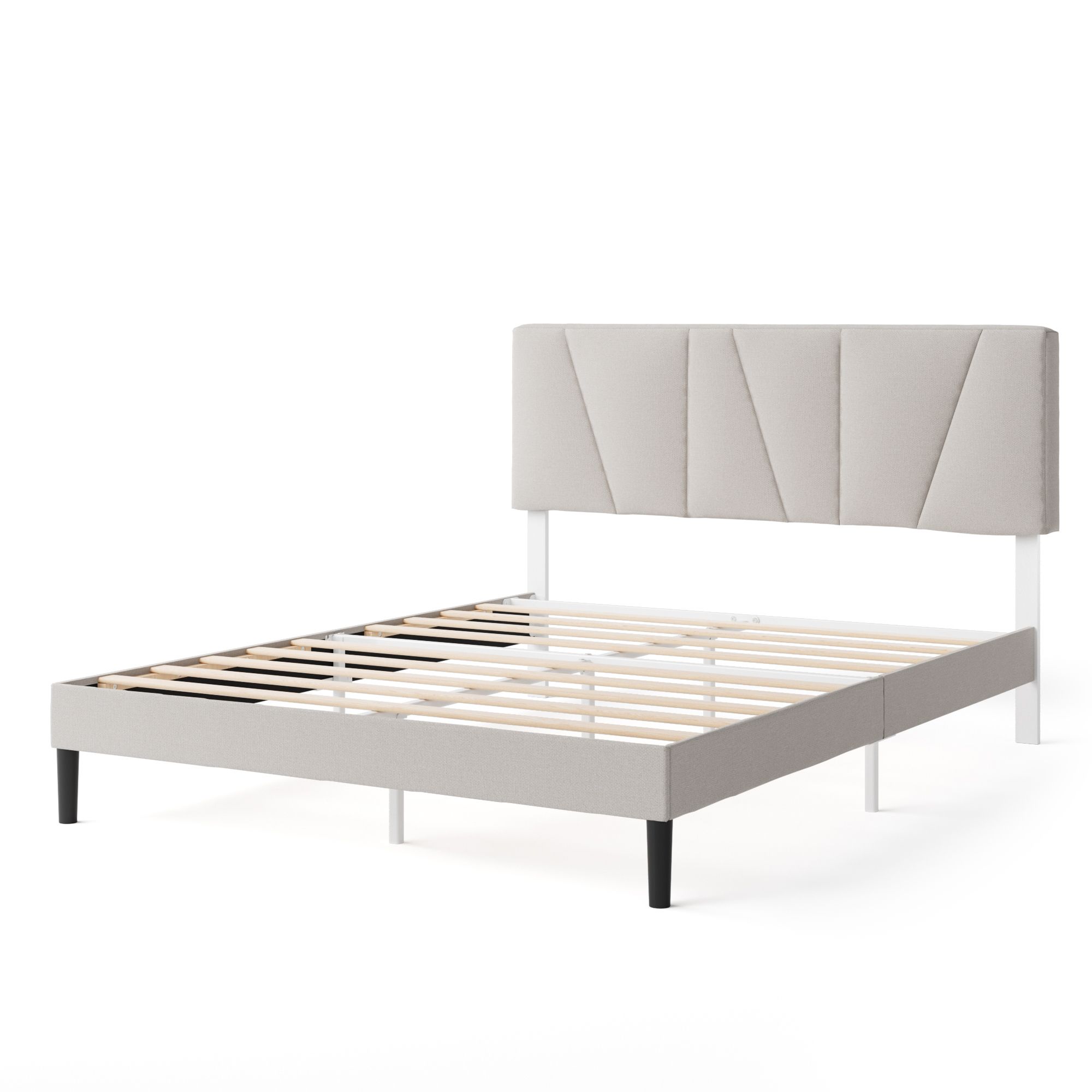 Zinus Upholstered White Geometric Headboard Platform Bed
