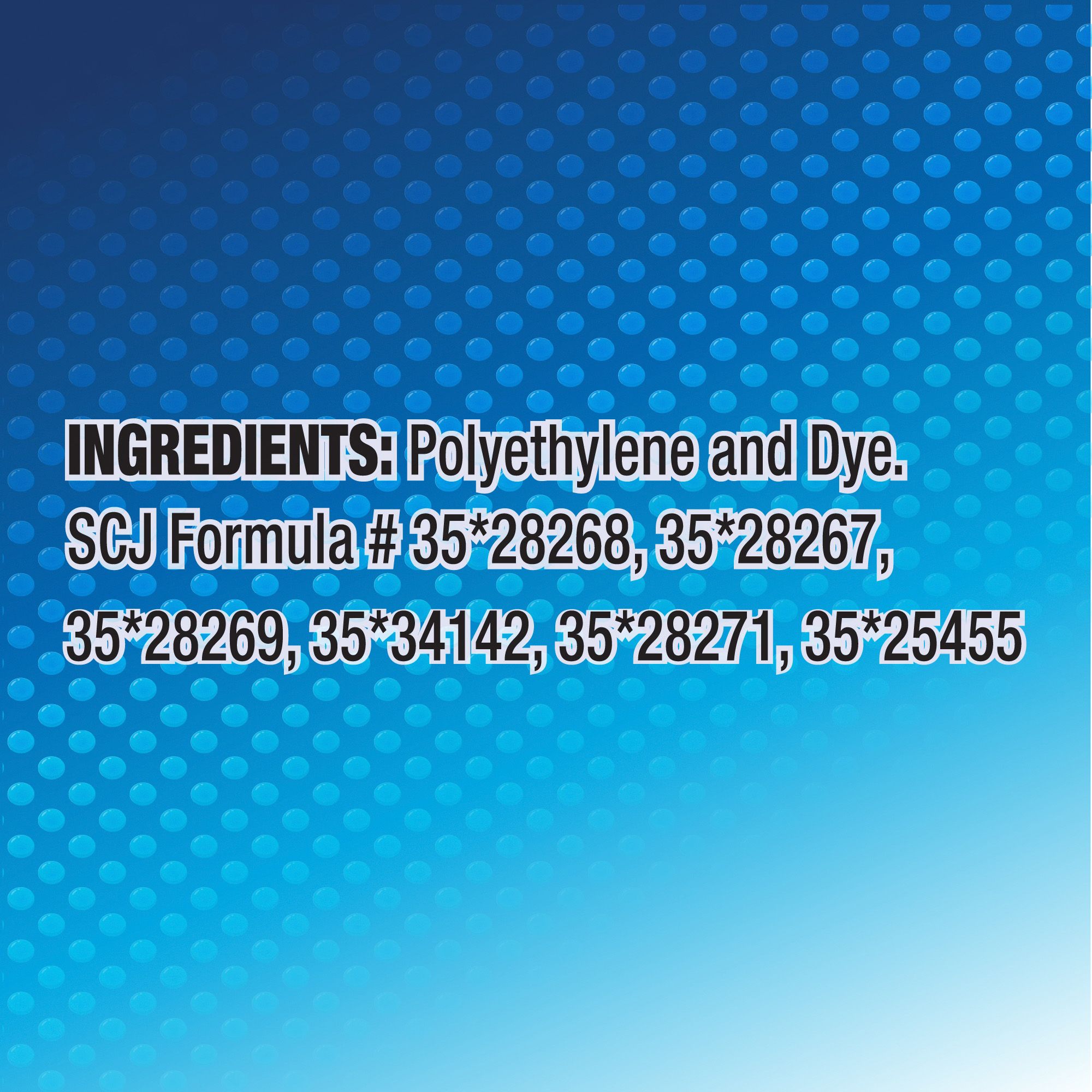 Polyethylene and Dye. SCJ Formula # 35*28268, 35*28267, 35*28269, 35*34142, 35*28271, 35*25455