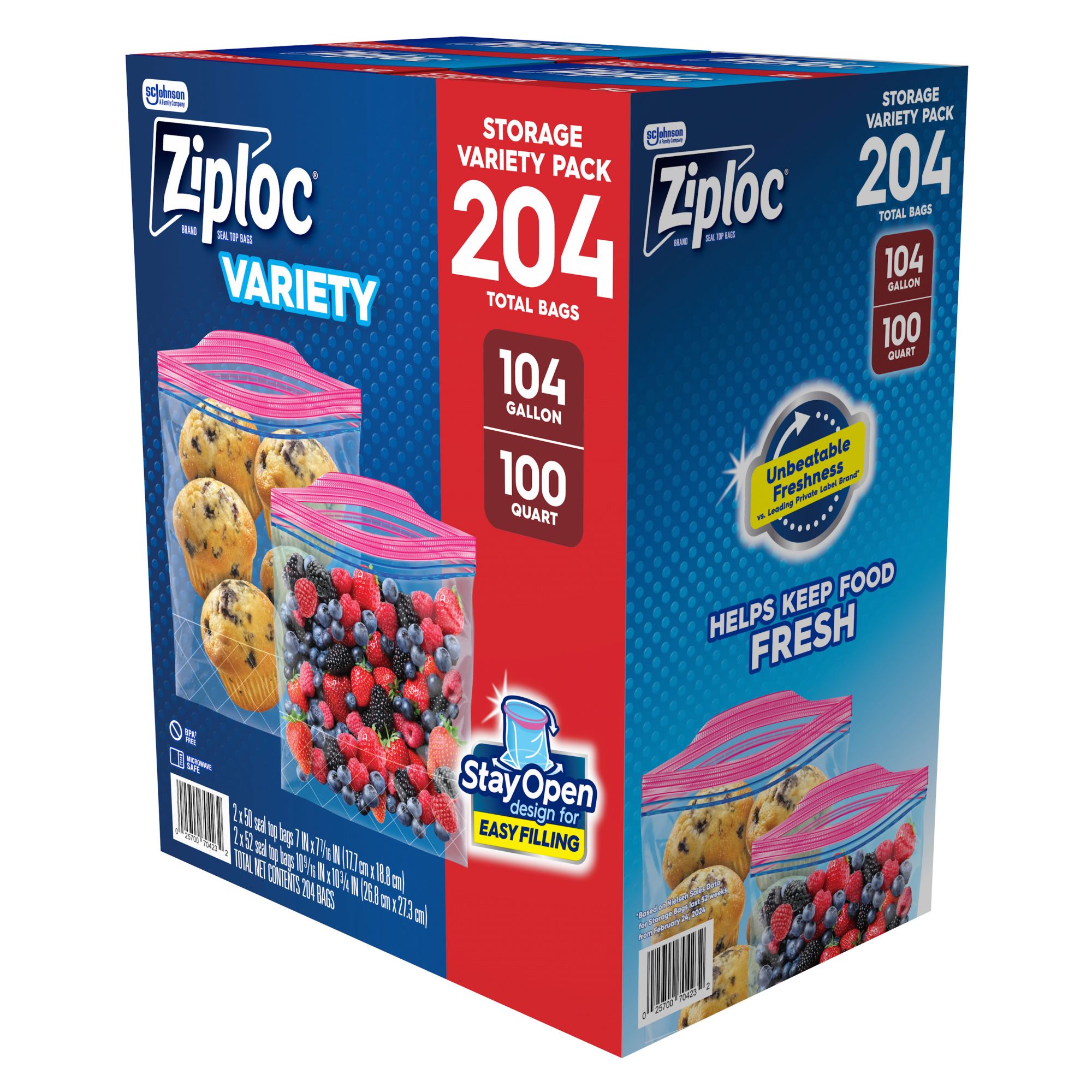 Trusted Brand: Other bags try to replicate us, but there’s only one Ziploc® Brand Bag Includes 204 storage bags
